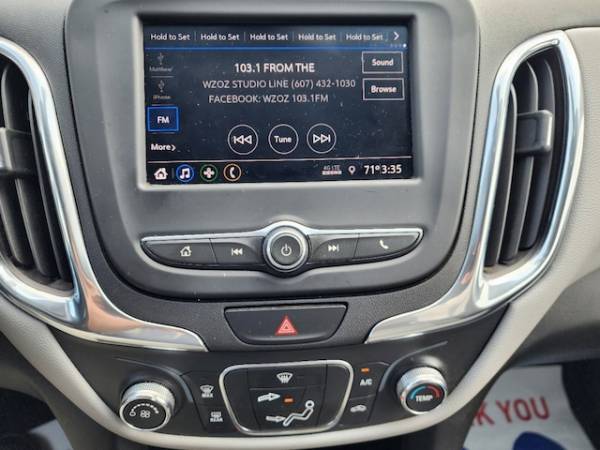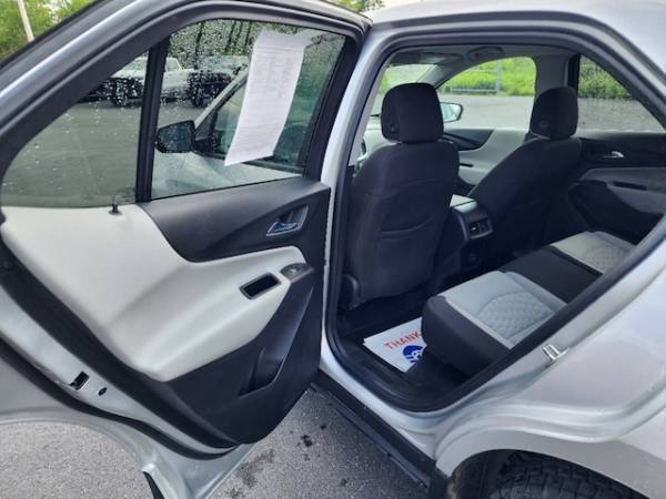 LS Convenience Package, Front License Plate Mounting Package, SEAT ADJUSTERDRIVER 8-WAY POWER WITH 2-WAY POWER LUMBAR, Rear Vision Camera, Keyless Open includes extended range Remote Keyless Entry with lock and unlock feature, Liftgaterear manual, Tirecompact spareT135/70R16 blackwall, TRANSMISSION6-SPEED AUTOMATICELECTRONICALLY-CONTROLLED WITH OVERDRIVEincludes Driver Shift Control (STD), Shift leverchrome-trimmed, Wheels17' (43.2 cm) aluminum, Air conditioningsemi-automaticsingle-zone, Door handlesbody-color, Mechanical jack with tools, USB charging-only ports2located in the rear of the floor console, SEAT ADJUSTER2-WAY POWER DRIVER LUMBAR CONTROL, Assist handlefront passenger, Power outletcargo area auxiliary12-volt, SILVER ICE METALLIC, Floor matscarpeted rear, Teen Driver a configurable feature that lets you activate customizable vehicle settings associated with a key fobto help encourage safe driving behavior. It can limit certain available vehicle featuresand it prevents certain safety systems from being turned off. An in-vehicle report card gives you information on driving habits and helps you to continue to coach your new driver, Brakeelectronic parking, Windowpower with driver Express-Up and Down, Horndual-note, Steering columntilt and telescoping, TiresP225/65R17 all-season blackwall (AWD only.), Daytime Running Lampsseparate cavityLED, Displaydriver instrument information enhancedmonochromatic, Mirrorinside rearview manual day/night, Seat adjusterdriver 4-way manualfore/aftup/down, Engine1.5L Turbo DOHC 4-cylinderSIDIVVT (170 hp [127.0 kW] @ 5600 rpm203 lb-ft of torque [275.0 N-m] @ 2000 - 4000 rpm), Map pocketfront passenger seatback, Steering wheel controlsaudiophone interface and driver information center controls, Seat trimpremium cloth, GVWR4630 lbs. (2100 kg) (AWD only.), Airbagsdual-stagefrontaldriver and right front passenger with Passenger Sensing Systemthorax side-impactseat mounteddriver and right front passengerroof-railside front and rear outboard seating positions (Always use seat belts and child restraints. Children are safer when properly secured in a rear seat in the appropriate child restraint. See the Owner's Manual for more information.), FuelgasolineE15, Door lockspower with lock-out protection, Theft-deterrent systemunauthorized entry, Following Distance Indicator, 4G LTE Wi-Fi Hotspot capable (Terms and limitations apply. See onstar.com or dealer for details.), OnStar and Chevrolet connected services capable (Terms and limitations apply. See onstar.com or dealer for details.), Tire Pressure Monitormanual learn with Tire Fill Alert (Does not apply to spare tire.), Automatic Emergency Braking, Bluetooth for phone personal cell phone connectivity to vehicle audio system (Go to my.chevrolet.com/learn to find out which phones are compatible with the vehicle.), Chevrolet Connected Access capable (Subject to terms. See onstar.com or dealer for details.), Axle3.87 final drive ratio (AWD only.), Visorsdriver and front passenger illuminated vanity mirrorscovered, Headlampshalogen composite, Seatsfront bucket, Windowspowerrear with Express-Down, SEATSFRONT BUCKET(STD), Head restraints2-way adjustable (up/down)front, MEDIUM ASH GRAYPREMIUM CLOTH SEAT TRIM, Assist handledriver, Keyless Startpush-button, Windowpower with front passenger Express-Down, Noise control systemactive noise cancellation, Headlamp controlIntelliBeam auto high beam, USB ports2with auxiliary input jacklocated in front center stack storage area, Cruise controlelectronic with set and resume speed, Exhaustsingle outlet, Door locksrear child securitymanual, Active aero shutters, AXLE3.87 FINAL DRIVE RATIO, Transmission6-speed automaticelectronically-controlled with overdrive includes Driver Shift Control, Engine controlstop-start system, LICENSE PLATE FRONT MOUNTING PACKAGE, Speedometermiles/kilometers, Seatrear split-folding with center armrest, Audio system feature6-speaker system, Rear seat reminder, Floor matscarpeted front, Brake lininghigh-performancenoise and dust performance, Suspensionfront MacPherson strut, Brakes4-wheel antilock4-wheel disc 16' front and rear, Lane Keep Assist with Lane Departure Warning, Defoggerrear-window electric, LS PREFERRED EQUIPMENT GROUPIncludes Standard Equipment, Power outletfront auxiliary12-volt, TIRESP225/65R17 ALL-SEASON BLACKWALL(STD), Assist handlesrear outboard, Mirrorsoutside heated power-adjustablemanual-folding, Seat adjusterfront passenger 4-way manual, Suspensionrear 4-link, TrimBlack lower window, Steering wheel3-spokedeluxe, AUDIO SYSTEMCHEVROLET INFOTAINMENT 3 SYSTEM7' DIAGONAL COLOR TOUCHSCREENAM/FM STEREO.Additional features for compatible phones include: Bluetooth audio streaming for 2 active devicesvoice command pass-through to phoneApple CarPlay and Android Auto capable. (STD), Audio systemChevrolet Infotainment 3 system7' diagonal color touchscreenAM/FM stereo. Additional features for compatible phones include: Bluetooth audio streaming for 2 active devicesvoice command pass-through to phoneApple CarPlay and Android Auto capable., Remote panic alarm, All-wheel drive (Included and only available with AWD models.), GLASSDEEP-TINTEDREAR, Mirror capsBlack, Antennaroof-mounted (Black.), Wheelspare16' (40.6 cm) steel, Glasssolar absorbinglight, ENGINE1.5L TURBO DOHC 4-CYLINDERSIDIVVT(170 hp [127.0 kW] @ 5600 rpm203 lb-ft of torque [275.0 N-m] @ 2000 - 4000 rpm) (STD), Forward Collision Alert, SiriusXM Radio delete, StabiliTrakstability control system with traction control, Front Pedestrian Braking, Map pocketdriver seatback, Driver Shift Controls, Glassacousticlaminated windshield, WHEELS17' (43.2 CM) ALUMINUM(STD), LS CONVENIENCE PACKAGEincludes (AG1) 8-way power driver seat adjuster(AL9) 2-way power driver lumbar control and (AKO) deep-tinted rear glass, Headlamp controlautomatic on and off with automatic delay