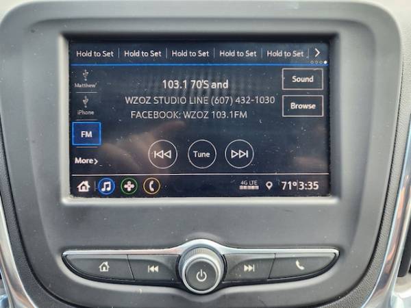 Audio systemChevrolet Infotainment 3 system7' diagonal color touchscreenAM/FM stereo. Additional features for compatible phones include: Bluetooth audio streaming for 2 active devicesvoice command pass-through to phoneApple CarPlay and Android Auto capable.