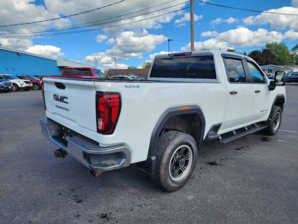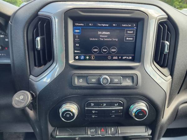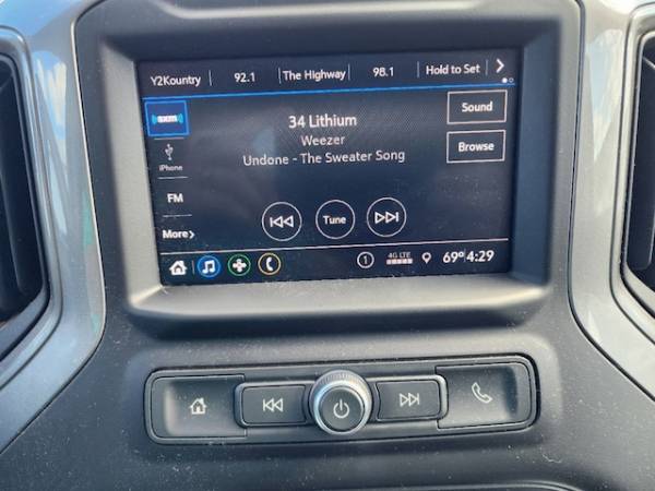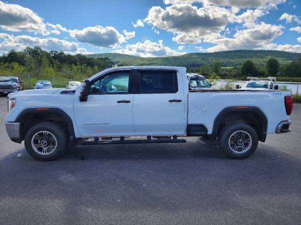 Spray-On Pickup Bed Liner w/GMC Logo, Integrated Trailer Brake Controller, Steering Wheel-Mounted Cruise Control, Electric Rear-Window Defogger, Deep-Tinted Glass, OnStar & GMC Connected Services Capable, 220 Amp Alternator, Skid Plates, LED Cargo Area Lighting, SiriusXM Radio, LED Smoked Amber Roof Marker Lamps, Tailgate and bed rail protection capstop (Deleted with (ZW9) pickup bed delete.), GrilleChrome surround with Black mesh, TRAILER BRAKE CONTROLLERINTEGRATED, Door lockspower (Standard on Crew Cab and Double Cab. On Regular Cabincluded and only available with (PCI) Convenience Package.) (Standard on Crew Cab and Double Cab. On Regular Cabincluded and only available with (PCI) Convenience Package or (ZLQ) Fleet Convenience Package.), Seatrear 60/40 folding bench (folds up)3-passenger (includes child seat top tether anchor) (Not available with Regular Cab model.), Steering columnTilt-Wheelmanual with wheel locking security feature, Air conditioningsingle-zone, Pickup bed includes bed assist step (Deleted when (ZW9) pickup bed delete is ordered.), Windowspower rearexpress down (Not available on Regular Cab models.), Seatsfront 40/20/40 split-bench with upper covered armrest storage, JET BLACKVINYL SEAT TRIM, TaillampsLED tail and SRW are incandescent stopturn and reverse light and DRW are LED stopturn and reverse light, Teen Driver a configurable feature that lets you activate customizable vehicle settings associated with a key fobto help encourage safe driving behavior. It can limit certain available vehicle featuresand it prevents certain safety systems from being turned off. An in-vehicle report card gives you information on driving habits and helps you to continue to coach your new driver, Windowpower frontdrivers express up/down (Standard on Crew Cab and Double Cab. On Regular Cabincluded and only available with (PCI) Convenience Package.) (Standard on Crew Cab and Double Cab. On Regular Cabincluded and only available with (PCI) Convenience Package or (ZLQ) Fleet Convenience Package.), GLASSDEEP-TINTED, Transfer casetwo-speed electronic shift with push button controls (Requires 4WD models.), Seat trimVinyl, GVWR11 350 lbs. (5148 kg) with single rear wheels (Included and only available with TK30743 model and (L8T) 6.6L V8 gas engine. Requires single rear wheels.), Alternator170 amps (Requires (L8T) 6.6L V8 gas engine.), CornerSteprear bumper, Bluetooth for phone connectivity to vehicle infotainment system, BED LINERSPRAY-ONPickup bedliner with GMC logo (does not include spray-on liner on tailgate due to Black composite inner panel), SKID PLATESprotect the oil panfront axle and transfer case, SEATSFRONT 40/20/40 SPLIT-BENCHwith upper covered armrest storage (STD), REAR AXLE3.73 RATIO, Exterior Temperature Display located in radio display, TiresLT275/70R18E all-terrainblackwall (Requires single rear wheels.), Tire Pressure Monitoring System with Tire Fill Alert (does not apply to spare tire), ENGINE6.6L V8 WITH DIRECT INJECTION AND VARIABLE VALVE TIMINGGASOLINE(401 hp [299 kW] @ 5200 rpm464 lb-ft of torque [629 N-m] @ 4000 rpm) (STD), GVWR11 350 LBS. (5148 KG) WITH SINGLE REAR WHEELS(STD), ALTERNATOR220 AMPS, Brake lining wear indicator, Framefully-boxedhydroformed front section and a fully-boxed stamped rear section, StabiliTrakstability control system with Proactive Roll Avoidance and traction control includes electronic trailer sway control and hill start assist, Mirrorsoutside high-visibility vertical trailering lower convex mirrorsmanual-folding/extending (extends 3.31' [84.25mm])molded in Black, MoldingsbeltlineBlack, Rear Seat Reminder (Requires Crew Cab or Double Cab model.), Tirespare LT275/70R18 all-terrainblackwall (Included and only available with (QF6) LT275/70R18E all-terrainblackwall tires with (E63) pickup bed single rear wheel models. Available to order when (ZW9) pickup bed delete and (QF6) LT275/70R18E all-terrainblackwall tires are ordered with single rear wheel models.), Bed StepBlack integrated on forward portion of bed on driver and passenger side (Not available with (ZW9) pickup bed delete.), USB ports2 (first row) located on instrument panel, Lampscargo areacab mounted integrated with center high mount stop lampwith switch in bank on left side of steering wheel, Tire carrier lock keyed cylinder lock that utilizes same key as ignition and door (Deleted with (ZW9) pickup bed delete.), Windowpower frontpassenger express down (Standard on Crew Cab and Double Cab. On Regular Cabincluded and only available with (PCI) Convenience Package.) (Standard on Crew Cab and Double Cab. On Regular Cabincluded and only available with (PCI) Convenience Package or (ZLQ) Fleet Convenience Package.), TAILGATEGATE FUNCTION MANUAL WITH EZ LIFTincludes power lock and releaseincludes hitch area light, HeadlampsLED reflector with incandescent turn signals and LED signature Daytime Running Lamps, SNOW PLOW PREP/CAMPER PACKAGEincludes (KW5) 220-amp alternatorincludes increased front GAWR on Heavy Duty models(NZZ) skid plates (transfer case and oil pan)pass through dash grommet hole and roof emergency light provisions. Contact GM Upfitter Integration at www.gmupfitter.com for plow installation details and assistance. Note: if ordered for Camper usagerecommend ordering (UY2) Trailering wiring provisions. and includes (KW5) 220-amp alternator, Engine6.6L V8 with Direct Injection and Variable Valve Timinggasoline (401 hp [299 kW] @ 5200 rpm464 lb-ft of torque [629 N-m] @ 4000 rpm), WORK TRUCK PREFERRED EQUIPMENT GROUPIncludes Standard Equipment, Air filterheavy-duty, WHEELS18' (45.7 CM) PAINTED STEELSILVER8-SPOKE(STD), Transmission6-speed automaticheavy-duty, SIRIUSXM RADIOenjoy an All Access trial subscription with over 150 channels including commercial-free musicplus sportsnews and entertainment. Plus listening on the SiriusXM apponline and at home on compatible connected devices is includedso you'll hear the best SiriusXM has to offeranywhere life takes you. Welcome to the world of Siri