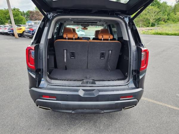 Dual SkyScape 2-Panel Power Sunroof, Wheels: 20' Machined Aluminum w/Dark Accents, (0 P) Ebony Twilight Metallic, Front & Rear Splash Guards (LPO), Front License Plate Bracket, Transmission9-speed automaticelectronically-controlled with 3.6L V6 engine, Seat adjusterpower driver lumbar control, Door lockspower programmable with lockout protection, Engine air filtration monitor, SUNROOFDUAL SKYSCAPE 2-PANEL POWERwith tilt-sliding front and fixed rear with sunscreen, Wipersfront intermittent with washers, Remote Keyless Entryextended range with lock and unlock feature, AUDIO SYSTEM8' DIAGONAL GMC INFOTAINMENT SYSTEM WITH NAVIGATIONincludes multi-touch displayAM/FM/SiriusXM stereoBluetooth streaming audio for music and most phonesAndroid Auto and Apple CarPlay capability for compatible phonesadvanced voice recognitionin-vehicle appspersonalized profiles for infotainment and vehicle settings (Standard on models built after September 23rd2019) (STD), Displaydriver instrument information4.2' multi-color, Sensorhumidity and windshield temperature, Audio system featureBose premium 8-speaker system with sub-woofer (Standard on models built after September 23rd2019), Audio system8' diagonal GMC Infotainment System with Navigation includes multi-touch displayAM/FM/SiriusXM stereoBluetooth streaming audio for music and most phonesAndroid Auto and Apple CarPlay capability for compatible phonesadvanced voice recognitionin-vehicle appspersonalized profiles for infotainment and vehicle settings (Standard on models built after September 23rd2019), Tire Pressure Monitoring System with Tire Fill Alert, Universal Home Remote includes garage door opener3-channel programmable, Advanced Twin-Clutch AWD System, USB ports2 in front (type-A and type-C)2 in second row (type-A and type-C) and 1 in third row (type-A), EBONY TWILIGHT METALLIC, Electronic parking brake, Liftgatepower programmablehands free with emblem projection, Teen Driver a configurable feature that lets you activate customizable vehicle settings associated with a key fobto help encourage safe driving behavior. It can limit certain available vehicle featuresand it prevents certain safety systems from being turned off. An in-vehicle report card gives you information on driving habits and helps you to continue to coach your new driver, Airbagsfrontal and side-impact for driver and front passenger; driver inboard seat-mounted side-impact; driver side knee; and roof-rail mounted head-curtain for all rows in outboard seating positions (Always use seat belts and the correct child restraints. Children are safer when properly secured in a rear seat in the appropriate child restraint. See the Owner's Manual for more information.), Horndual-note, Lamp Packageinteriordeluxe, Air ventsrear (Standard with (ABD) 5-passenger seating only.), Wiperrear intermittent with washer, Lane Change Alert with Side Blind Zone Alert, ENGINE3.6L V6SIDIDOHCwith Variable Valve Timing (VVT) (310 hp [231.1 kW] @ 6600 rpm271 lb-ft of torque [365.9 N-m]) @ 5000 rpm (STD), Windowspower with driver Express-Up/Down and front passenger Express-Down, LICENSE PLATE BRACKETFRONT, Tire Fill Alert provides audible alerts outside the vehicle when inflating an under inflated tire to the recommended tire pressure., Roof railsGloss Black, Seat beltsfrontheight-adjustable, Engine controlstop/start system, LPOFRONT AND REAR SPLASH GUARDS, SEATING6-PASSENGER (2-2-2 SEATING CONFIGURATION)with 2nd row flat-folding captain's chairs with Smart Slide and 3rd row 50/50 split-bench seat, Daytime Running LampsLED, Rear Cross Traffic Alert, Active Noise Cancellation, E10 Fuel capable, 4G LTE Wi-Fi Hotspot capable (Terms and limitations apply. See onstar.com or dealer for details.), Antennabody-colorroof-mounted shark fin, Seatsfront bucket, SuspensionRide and Handling McPherson struts for front and independent 5-link rear, Steering wheelleather-wrapped with steering wheel mounted audio and cruise controls, SEATSFRONT BUCKET(STD), Cup holders 2 in front center console2 in front door panel2 bottle holders in front door panel2 in 2nd row and 2 in 3rd row10 total, Remote start, ChassisAll-Wheel Drive System with All-Wheel Drive Disconnect (Included and only available with AWD models.), TiresP255/65R17 all-terrainblackwall, Cargo Management System includes cargo rails (Deleted when (ABB) 6-passenger seating or (ABA) 7-passenger seating are ordered.), Seat adjusterpassenger 4-way manual, Traction Select FWD models feature NormalSnowSport and Trailer/Tow (if equipped); AWD models feature 4x4 (AWD)2x4 (AWD Disconnect)SportOff-Road and Trailer/Tow (if equipped), Glassdeep-tinted (all windowsexcept light-tinted glass on windshield and driver- and front passenger-side glass), Passenger Sensing System sensor indicator inflatable restraintfront passenger/child presence detector (Always use seat belts and the correct child restraints. Children are safer when properly secured in a rear seat in the appropriate child restraint. See the Owner's Manual for more information.), Power outlet120-volt3-prong household style located on the rear of center console, AIR CONDITIONINGREAR, Mirrorsoutside heatedpower-adjustablemanual-foldingbody-color with integrated turn signal indicators (Mirror caps are Black.), AT4 PREFERRED EQUIPMENT GROUPincludes standard equipment, Keyless open and start, Lightinginterior with theater dimmingcargo compartmentreading lights for front seatssecond row reading lamps integrated into dome lightdoor-and tailgate-activated switches and illuminated entry and exit feature, Hill Descent Control, Cruise controlelectronic with set and resume speed, GMC Connected Access capable (Subject to terms. See onstar.com or dealer for details.), Consolefront center with 2 cup holders and storageincludes rear storage drawer (Excludes storage drawer with (ABD) 5-passenger seating.), Door locksrear child security, Brakes4-wheel antilock4-wheel disc17' front and rear, GVWR6001 lbs (2722 kg), AXLE3.49 FINAL DRIVE RATIO, Exhaus