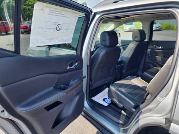Denali Ultimate Package, Denali Technology Package, Dual SkyScape 2-Panel Power Sunroof, Trailering Package, (0 P) Sterling Metallic, Front License Plate Bracket, Seat adjusterpower driver lumbar control, Door lockspower programmable with lockout protection, Engine air filtration monitor, TRAILERING PACKAGEincludes factory-installed hitch4000 lbs. towing7-pin wiring harnessClass III hitch(V08) heavy-duty cooling system(PZ8) Hitch Guidance with Hitch View and (CTT) Hitch Guidance Also includes (KW7) 170-amp alternator with (LGX) 3.6L V6 engine.), Wireless Apple CarPlay/Wireless Android Auto, AUDIO SYSTEM8' DIAGONAL GMC INFOTAINMENT SYSTEM WITH NAVIGATIONincludes multi-touch displayAM/FM/SiriusXM stereoBluetooth streaming audio for music and most phonesAndroid Auto and Apple CarPlay capability for compatible phonesadvanced voice recognitionin-vehicle appspersonalized profiles for infotainment and vehicle settings (STD), JET BLACKPERFORATED LEATHER-APPOINTED SEAT TRIM, Alternator155 amps (Standard with (LGX) 3.6L V6 engine without (V92) Trailering Package.), REAR CAMERA MIRROR, Wipersfront intermittent with washers, SUNROOFDUAL SKYSCAPE 2-PANEL POWERwith tilt-sliding front and fixed rear with sunscreen, Remote Keyless Entryextended range with lock and unlock feature, Steering wheelwrapped with mounted audio and cruise controls, Sensorhumidity and windshield temperature, HD SURROUND VISION, Transmission9-speed automaticelectronically-controlled with 3.6L V6 engine (Standard with (LGX) 3.6L V6 engine only.), Universal Home Remote includes garage door opener3-channel programmable, DENALI PREFERRED EQUIPMENT GROUPIncludes Standard Equipment, USB ports2 in front (type-A and type-C)2 in second row (type-A and type-C) and 1 in third row (type-A), Electronic parking brake, Liftgatepower programmablehands free with emblem projection, Teen Driver a configurable feature that lets you activate customizable vehicle settings associated with a key fobto help encourage safe driving behavior. It can limit certain available vehicle featuresand it prevents certain safety systems from being turned off. An in-vehicle report card gives you information on driving habits and helps you to continue to coach your new driver, DENALI ULTIMATE PACKAGEincludes (CWM) Denali Technology Package content(C3U) Dual SkyScape 2-panel power sunroof(F45) Adaptive Ride Control and (V92) Trailering Package, Airbagsfrontal and side-impact for driver and front passenger; driver inboard seat-mounted side-impact; driver side knee; and roof-rail mounted head-curtain for all rows in outboard seating positions (Always use seat belts and the correct child restraints. Children are safer when properly secured in a rear seat in the appropriate child restraint. See the Owner's Manual for more information.), WHEELS20' (50.8 CM) ULTRA BRIGHT MACHINED ALUMINUM(STD), Horndual-note, Lamp Packageinteriordeluxe, Seatsheated and ventilated driver and front passenger seat cushions and seatbacks, Wiperrear intermittent with washer, Lane Change Alert with Side Blind Zone Alert, ENGINE3.6L V6SIDIDOHCwith Variable Valve Timing (VVT) (310 hp [231.1 kW] @ 6600 rpm271 lb-ft of torque [365.9 N-m]) @ 5000 rpm (STD), Windowspower with driver Express-Up/Down and front passenger Express-Down, Roof railsbright, LICENSE PLATE BRACKETFRONT, COOLING SYSTEMHEAVY-DUTY, Seat beltsfrontheight-adjustable, Seating6-passenger (2-2-2 seating configuration) with 2nd row flat-folding captain's chairs with Smart Slide and 3rd row manual-folding 50/50 split-bench seat, Daytime Running LampsLED, Audio system8' diagonal GMC Infotainment System with Navigation includes multi-touch displayAM/FM/SiriusXM stereoBluetooth streaming audio for music and most phonesAndroid Auto and Apple CarPlay capability for compatible phonesadvanced voice recognitionin-vehicle appspersonalized profiles for infotainment and vehicle settings, Door handlesbody-color with chrome accent, GVWR6001 lbs. (2722 kg), Seat adjusterpower passenger lumbar control, ADAPTIVE CRUISE CONTROL, Automatic Stop/Start, Displayenhanced driver instrument information 8' multi-color reconfigurable, Rear Cross Traffic Alert, Active Noise Cancellation, Head-Up Display, E10 Fuel capable, Following Distance Indicator, ADAPTIVE RIDE CONTROLIncludes (FE5) Performance Ride and Handling Suspension.), STERLING METALLIC, Antennabody-colorroof-mounted shark fin, Seatsfront bucket, HITCH GUIDANCETRAILERING ASSIST GUIDELINE, Steering columnpower tilt and telescopic, Front and Rear Park Assist (Beginning with start of production through July 242022certain vehicles will be forced to include (00Z) Not Equipped with Front and Rear Park Assistwhich removes Front and Rear Park Assist. See dealer for details or the window label for the features on a specific vehicle.), Mirrorsoutside heatedpower-adjustablepower-foldingbody-colordriver-side auto-dimming with integrated turn signal indicators, ENHANCED AUTOMATIC EMERGENCY BRAKING, SEATSFRONT BUCKET(STD), HITCH GUIDANCE WITH HITCH VIEW, Cup holders 2 in front center console2 in front door panel2 bottle holders in front door panel2 in 2nd row and 2 in 3rd row10 total, Remote Start, ChassisAll-Wheel Drive System with All-Wheel Drive Disconnect (Included and only available with AWD models.), SiriusXM with 360L Equipped with SiriusXM with 360L. Enjoy a trial subscription of the Platinum Plan for the full 360L experiencewith a greater variety of SiriusXM contenta more personalized experience and easier navigation. With the Platinum Planyou can also enjoy your favorites everywhere you gowith the SiriusXM apponline and at home on compatible connected devices (IMPORTANT: The SiriusXM radio trial package is not provided on vehicles that are ordered for Fleet Daily Rental ('FDR', Traction Select FWD models feature NormalSnowSport and Trailer/Tow (if equipped); AWD models feature 4x4 (AWD)2x4 (AWD Disconnect)SportOff-Road and Trailer/Tow (if equipped), Glassdeep-tinted (all windowsexcept light-tinted glass on win