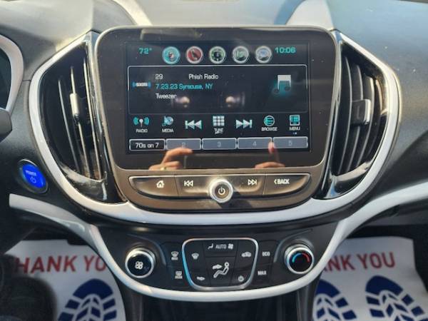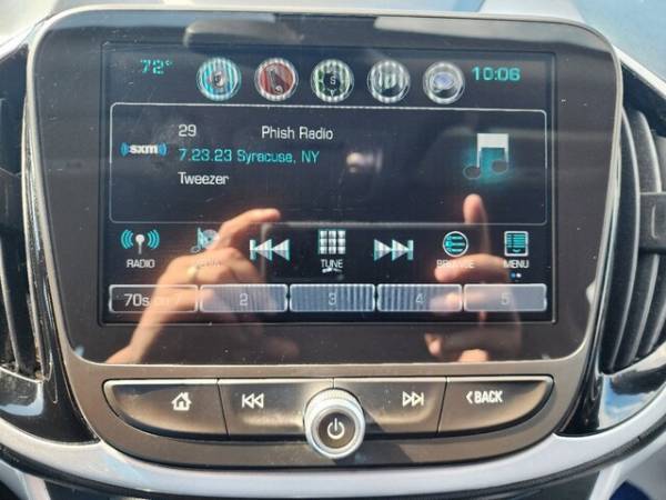 Wheel Lock Kit (LPO), Front License Plate Bracket, Chevrolet Connected Access with 10 years of standard connectivity which enables services such asVehicle DiagnosticsDealer Maintenance NotificationChevrolet Smart DriverMarketplace and more; EFFECTIVE WITH SALES STARTING 5/1/2018. (Limitations apply. Not transferable. Standard connectivity available to original purchaser for ten years from the date of initial vehicle purchase for model year 2018 or newer Chevrolet vehicles. See onstar.com for details and further plan limitations. Connect, AUDIO SYSTEMCHEVROLET MYLINK RADIOwith 8' diagonal color touch-screenAM/FM stereo with seek-and-scan and digital clockincludes Bluetooth streaming audio for music and select phones; voice-activated technology for radio and phone; featuring Android Auto and Apple CarPlay capability for compatible phone (STD), Rear Vision Camera, Air bagPassenger Sensing System sensor indicator inflatable restraintfront passenger/child presence detector (Always use safety belts and child restraints. Children are safer when properly secured in a rear seat in the appropriate child restraint. See the Owner's Manual for more information.), EmissionsFederal Tier 3, Chevrolet 4G LTE and available built-in Wi-Fi hotspot offers a fast and reliable Internet connection for up to 7 devices; includes data trial for 1 month or 3GB (whichever comes first); EFFECTIVE WITH RETAIL SALES STARTING 5/1/2018. (Available Wi-Fi requires compatible mobile deviceactive OnStar service and data plan. Data plans provided by AT&T. Visit onstar.com for details and system limitations.), Cruise controlelectronic with set and resume speedsteering wheel-mounted controls, SILVER ICE METALLIC, Antennaroof-mountedshark-fin type, Battery18.4 kWhPropulsionLithium-ionRechargeable Energy Storage System includes liquid thermal management system with active control, Brakeparkingelectric, Seatrear 60/40 split-folding, LT PREFERRED EQUIPMENT GROUPIncludes Standard Equipment, Steering wheelvinyl, JET BLACK/JET BLACKCLOTH SEAT TRIM, Mirrorinside rearview manual day/night, LICENSE PLATE BRACKETFRONT, Power outlets2 auxiliary12-volt 1 in front storage bin and 1 in rear of center console, Keyless Open and Start passive unlock and lock on all doors and liftgate; push-button start, Steering wheel controlsaudiovoice recognitioncruise and Driver Information Center, Charge controlprogrammable time of day with charging status indicator light on instrument panel, Air bagshead curtain side-impactfront and rear outboard seating positions (Always use safety belts and child restraints. Children are safer when properly secured in a rear seat in the appropriate child restraint. See the Owner's Manual for more information.), LATCH system (Lower Anchors and Top tethers for CHildren)for child safety seats, HeadlampsLED low-beamhalogen reflector high-beamautomatic exterior lamp control, Front wheel drive, Consolecentercovered storage bin with front and rear dual cup holders and rear 12-volt power outlet, E10 Fuel capable, Brakes4-wheel anti-lock disc with electro-hydraulic power, Wheels17' x 7' (43.2 cm x 17.8 cm) 5-spoke painted aluminum, Storagefront door panelsdedicated umbrella pocket and bottle holder, SteeringElectric Power Steering (EPS) assistvariable for low to high speed maneuvers, LampLED center high-mounted stop/brake, Axle2.64 final drive ratio, Drive mode control switchNormalSportMountain and Hold modes, Storagecovereddedicated for vehicle charging cord located in rear cargo area, Mirrorsoutside power-adjustablebody-colormanual-folding, Seat adjusterdriver 6-way manualfore/aftup/down with recline, ELECTRIC DRIVEextended range(149hp [111 kW] 294 lb-ft of torque [398 N-m]) (STD), Air bagsthorax side-impact seat-mountedside-rear outboard seating positions (Always use safety belts and child restraints. Children are safer when properly secured in a rear seat in the appropriate child restraint. See the Owner's Manual for more information.), Storageopenlocated forward of shifter, Air bagskneedriver and front passenger (Always use safety belts and child restraints. Children are safer when properly secured in a rear seat in the appropriate child restraint. See the Owner's Manual for more information.), Head restraints2-way adjustable (up/down)front, StabiliTrakstability control system with brake assist includes Traction Control, Safety belts3-pointall seating positions includes front seat dual pretensioners, Seat adjusterfront passenger 6-way manualfore/aftup/down with recline, Theft-deterrent systemanti-theft alarm with immobilizer, Battery12-volt with Rundown Protection, Lockout switchchildrear doors and windowsmanual control, Remote Keyless Entry includes remote startpanic alarm and delayed charging override functions, Windowspower with Express-Down on alldriver Express-Up with anti-pinch override, Electric drive extended range(149hp [111 kW] 294 lb-ft of torque [398 N-m]), Floor matscarpeted front and rear, SuspensionfrontMacPherson strut, Daytime Running LampsLED illumination, Tire Pressure Monitor System, Door lockspower programmable with delayed locking feature and lockout protection, Seatsfront bucket with reclining seatbacks and adjustable head restraints, Tires215/50R17 all-seasonblackwalllow-rolling resistance, LPOWHEEL LOCK KIT, Off-board connectivity via internet, Assist handles2rear outboard with rear coat hooks, SEATSFRONT BUCKET WITH RECLINING SEATBACKS AND ADJUSTABLE HEAD RESTRAINTS(STD), Recovery hookfront, Audio system feature6-speaker system, Air bagsthorax side-impact seat-mountedside-front outboard seating positions (Always use safety belts and child restraints. Children are safer when properly secured in a rear seat in the appropriate child restraint. See the Owner's Manual for more information.), Instrumentation8-inch colordigital reconfigurable LCD screen includes Driver Information Centercompasstrip/fuel informationvehicle information and vehicle messages, Shift knobvinyl, Defoggerrear-window electric, Glove