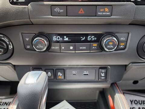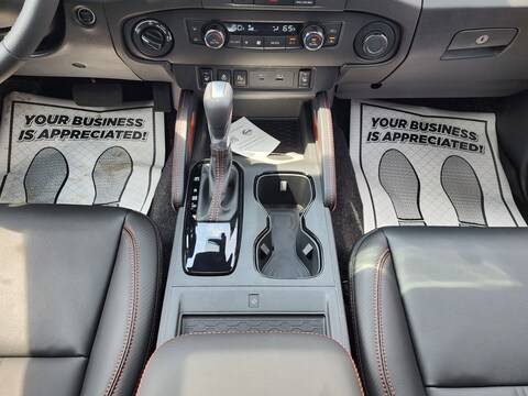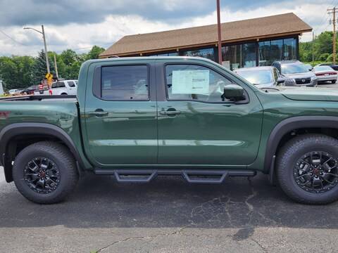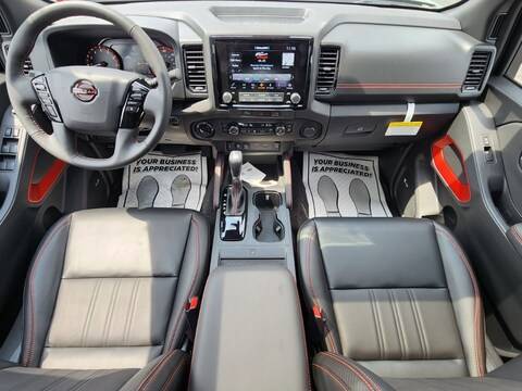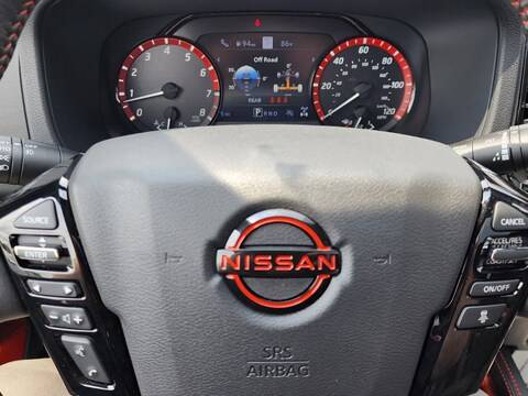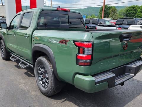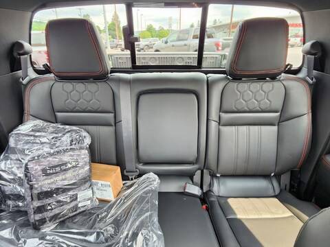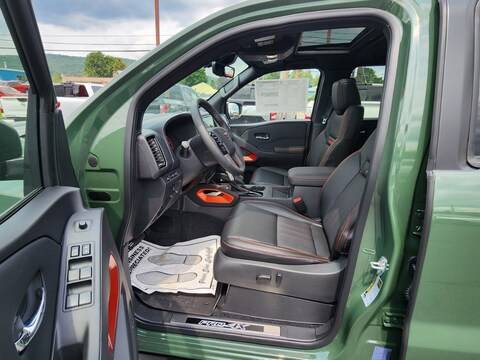, [K93] OFF-ROAD PROTECTION PACKAGE, Brake Actuated Limited Slip Differential, Front Center Armrest and Rear Center Armrest, Airbag Occupancy Sensor, Body-Colored Door Handles, Rear Cupholder, Double Wishbone Front Suspension w/Coil Springs, Towing Equipment -inc: Trailer Sway Control, 185 Amp Alternator, Day-Night Rearview Mirror, Front And Rear Anti-Roll Bars, Air Filtration, 3.692 Axle Ratio, Fade-To-Off Interior Lighting, Digital/Analog Appearance, Front Bucket Seats -inc: 6-way power driver's seat w/2-way manual lumbar support and 4-way manual front passenger's seat, Leather Gear Shifter Material, Outboard Front Lap And Shoulder Safety Belts -inc: Rear Center 3 PointHeight Adjusters and Pretensioners, Power 1st Row Windows w/Driver 1-Touch Down, 60-40 Folding Split-Bench Front Facing Fold-Up Cushion Rear Seat, GVWR: 6 012 lbs, TACTICAL GREEN METALLIC, Cargo Lamp w/High Mount Stop Light, Gauges -inc: SpeedometerOdometerVoltmeterOil PressureEngine Coolant TempTachometerTrip Odometer and Trip Computer, Engine Auto Stop-Start Feature, Dual Stage Driver And Passenger Front Airbags, Fully Galvanized Steel Panels, Integrated Roof Antenna, Full Floor Console w/Covered StorageMini Overhead Console w/Storage and 1 12V DC Power Outlet, Full Carpet Floor Covering, RearView Monitor Back-Up Camera, Body-Colored Power Side Mirrors w/Manual Folding, Wheels: 17' Alloy -inc: Type Borange bi center cap, Power Door Locks w/Autolock Feature, Variable Intermittent Wipers, Black Grille, Dual Zone Front Automatic Air Conditioning, Tailgate Rear Cargo Access, Tires: P265/70R17 All Terrain, Body-Colored Front Bumper w/Metal-Look Rub Strip/Fascia Accent and 2 Tow Hooks, Curtain 1st And 2nd Row Airbags, 3 Skid Plates, Cruise Control w/Steering Wheel Controls, Remote Keyless Entry w/Integrated Key TransmitterIlluminated Entry and Panic Button, Black Side Windows TrimBlack Front Windshield Trim and Black Rear Window Trim, Transmission w/Driver Selectable Mode and Oil Cooler, Battery w/Run Down Protection, Leather/Metal-Look Steering Wheel, Leatherette Door Trim Insert, 2 LCD Monitors In The Front, Intelligent Auto Headlights (i-Ah) Auto On/Off Aero-Composite Led Low/High Beam Daytime Running Headlamps w/Delay-Off, Single Stainless Steel Exhaust, [K03] PRO CONVENIENCE PACKAGE-inc: Bed Under-Rail LightingRemote Engine Starter120V Power Outlet in BedHeated Front SeatsIntelligent Around View Monitor (I-AVM)Moving Object Detection (MOD) and off-road modeUtili-Track System2 adjustable tie-down cleatsSpray-In BedlinerTrailer Hitch w/Wiring HarnessVPC installed accessoryHeated Steering WheelWireless Charging For Personal DevicesHeated Outside Mirrors120V Power Outlet in Rear Center Console, Front Map Lights, Driver And Passenger Visor Vanity Mirrors w/Driver And Passenger Illumination, Part-Time Four-Wheel Drive, Radio: SXM/AM/FM/AUX/USB Audio System w/6 Speakers -inc: 9.0' color touch-screen displaywireless Apple CarPlayAndroid AutoBluetooth hands-free phone system and streaming (audio or text message)voice recognition for audio featuresSiri Eyes Free1 USB-A and 1 USB-C front portssteering wheel audio controlsNissan door to door navigationNissanConnect services and Wi-Fi hotspot, Electronic Stability Control (ESC), HVAC -inc: Underseat Ducts, Transmission: 9-Speed Automatic, 1220# Maximum Payload, Seats w/Cloth Back Material, ABS And Driveline Traction Control, Front Fog Lamps, Radio w/Seek-ScanClock and Radio Data System, Tire Pressure Monitoring (TPMS) with individual display Tire Specific Low Tire Pressure Warning, [P02] PRO-4X PREMIUM PACKAGE-inc: Partial Under-Seat Storage DeleteAuto-Tilt & Slide Sunroof w/Manual ShadeAuto-Dimming MirrorFender Premium Audio System w/10 Speakersdual subwoofer17' Accessory Dark Beadlock Style Alloy WheelsFactory installed accessoryHomeLink UGDO, Immobilizer, Perimeter Alarm, Pickup Cargo Box Lights, 4-Wheel Disc Brakes w/4-Wheel ABSFront And Rear Vented DiscsBrake AssistHill Descent Control and Hill Hold Control, Driver Seat, Turn-By-Turn Navigation Directions, Full Cloth Headliner, Illuminated Locking Glove Box, Power Rear Windows, Full-Size Spare Tire Stored Underbody w/Crankdown, Off-Road Suspension, Bilstein Brand Name Shock Absorbers, Driver Information Center, Driver And Passenger Knee Airbag, Electronic Transfer Case, LED Brakelights, Manual Tailgate/Rear Door Lock, 1 12V DC Power Outlet, Delayed Accessory Power, Clearcoat Paint, Splash Guards, Passenger Seat, [F93] OFF-ROAD STYLE STEP RAILS, CHARCOAL W/LAVA REDFRONT & REAR LEATHER SEAT TRIM (1ST/2ND ROWS), 1 Seatback Storage Pocket, [V02] TECHNOLOGY PACKAGE-inc: Rear Sonar SystemRear Automatic Braking (RAB)High Beam Assist (HBA)Blind Spot Warning (BSW)Rear Cross Traffic Alert (RCTA)Intelligent Cruise Control (ICC)Lane Departure Warning (LDW), Dual Stage Driver And Passenger Seat-Mounted Side Airbags, Interior Trim -inc: Metal-Look Instrument Panel Insert and Chrome/Metal-Look Interior Accents, Side Impact Beams, [L11] PRO-4X CARPETED FLOOR MATS, Steel Spare Wheel, [N93] ILLUMINATED KICK PLATES, Manual Anti-Whiplash Adjustable Front Head Restraints and Manual Adjustable Rear Head Restraints, Proximity Key For Doors And Push Button Start, Automatic Emergency Braking with Pedestrian Detection, Sliding Rear Window, Hydraulic Power-Assist Speed-Sensing Steering, [F96] ELECTRONIC TAILGATE LOCK, Trip Computer, Rear Child Safety Locks, Black Fender Flares, Driver Foot Rest, Driver Selectable Rear Locking Differential, Driver Monitoring-Alert, 21.1 Gal. Fuel Tank, Deep Tinted Glass, Solid Axle Rear Suspension w/Leaf Springs, Collision Mitigation-Front, [K11] TOW PACKAGE: HITCHTOW HARNESS, Body-Colored Rear Step Bumper, Engine: 3.8L DI DOHC 24-Valve V6, Manual Tilt Steering Column, Front Cupholder, Instrument Panel Covered BinDashboard StorageDriver / Passenger And Rear Door Bins and 2nd Row Underseat Storage, Regular Box Style, Auto Locking Hubs, [B94] PRO-4X MUD FLAPS