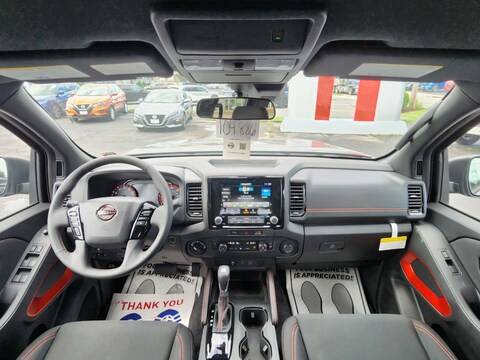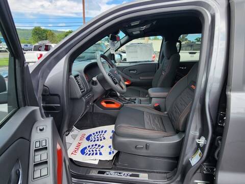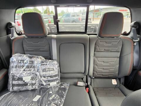 , [K93] OFF-ROAD PROTECTION PACKAGE, Brake Actuated Limited Slip Differential, Front Center Armrest and Rear Center Armrest, Airbag Occupancy Sensor, Body-Colored Door Handles, Rear Cupholder, GUN METALLIC, Double Wishbone Front Suspension w/Coil Springs, Towing Equipment -inc: Trailer Sway Control, 185 Amp Alternator, Day-Night Rearview Mirror, Front And Rear Anti-Roll Bars, Air Filtration, 3.692 Axle Ratio, Fade-To-Off Interior Lighting, Digital/Analog Appearance, Front Bucket Seats -inc: 6-way power driver's seat w/2-way manual lumbar support and 4-way manual front passenger's seat, Leather Gear Shifter Material, Outboard Front Lap And Shoulder Safety Belts -inc: Rear Center 3 PointHeight Adjusters and Pretensioners, Power 1st Row Windows w/Driver 1-Touch Down, 60-40 Folding Split-Bench Front Facing Fold-Up Cushion Rear Seat, GVWR: 6 012 lbs, Cargo Lamp w/High Mount Stop Light, Gauges -inc: SpeedometerOdometerVoltmeterOil PressureEngine Coolant TempTachometerTrip Odometer and Trip Computer, Engine Auto Stop-Start Feature, Dual Stage Driver And Passenger Front Airbags, Fully Galvanized Steel Panels, Integrated Roof Antenna, Full Floor Console w/Covered StorageMini Overhead Console w/Storage and 1 12V DC Power Outlet, Full Carpet Floor Covering, RearView Monitor Back-Up Camera, Body-Colored Power Side Mirrors w/Manual Folding, Wheels: 17' Alloy -inc: Type Borange bi center cap, Power Door Locks w/Autolock Feature, Variable Intermittent Wipers, Black Grille, Dual Zone Front Automatic Air Conditioning, Tailgate Rear Cargo Access, Tires: P265/70R17 All Terrain, Body-Colored Front Bumper w/Metal-Look Rub Strip/Fascia Accent and 2 Tow Hooks, Curtain 1st And 2nd Row Airbags, 3 Skid Plates, Cruise Control w/Steering Wheel Controls, Remote Keyless Entry w/Integrated Key TransmitterIlluminated Entry and Panic Button, Black Side Windows TrimBlack Front Windshield Trim and Black Rear Window Trim, Transmission w/Driver Selectable Mode and Oil Cooler, Battery w/Run Down Protection, Leather/Metal-Look Steering Wheel, Leatherette Door Trim Insert, 2 LCD Monitors In The Front, Intelligent Auto Headlights (i-Ah) Auto On/Off Aero-Composite Led Low/High Beam Daytime Running Headlamps w/Delay-Off, Single Stainless Steel Exhaust, Front Map Lights, Driver And Passenger Visor Vanity Mirrors w/Driver And Passenger Illumination, Part-Time Four-Wheel Drive, Radio: SXM/AM/FM/AUX/USB Audio System w/6 Speakers -inc: 9.0' color touch-screen displaywireless Apple CarPlayAndroid AutoBluetooth hands-free phone system and streaming (audio or text message)voice recognition for audio featuresSiri Eyes Free1 USB-A and 1 USB-C front portssteering wheel audio controlsNissan door to door navigationNissanConnect services and Wi-Fi hotspot, Electronic Stability Control (ESC), HVAC -inc: Underseat Ducts, [A93] DROP-IN BED LINER & BUMPER STEP, Transmission: 9-Speed Automatic, 1220# Maximum Payload, PRO Embroidered Premium Cloth Seat Trim, Seats w/Cloth Back Material, ABS And Driveline Traction Control, Front Fog Lamps, Radio w/Seek-ScanClock and Radio Data System, Tire Pressure Monitoring (TPMS) with individual display Tire Specific Low Tire Pressure Warning, Immobilizer, CHARCOAL W/LAVA RED STITPRO EMBROIDERED PREMIUM CLOTH SEAT TRIM, Perimeter Alarm, Pickup Cargo Box Lights, 4-Wheel Disc Brakes w/4-Wheel ABSFront And Rear Vented DiscsBrake AssistHill Descent Control and Hill Hold Control, Driver Seat, Turn-By-Turn Navigation Directions, Full Cloth Headliner, Illuminated Locking Glove Box, Power Rear Windows, Full-Size Spare Tire Stored Underbody w/Crankdown, Off-Road Suspension, Bilstein Brand Name Shock Absorbers, Driver Information Center, Driver And Passenger Knee Airbag, Electronic Transfer Case, [N10] REMOTE ENGINE STARTER ACCESSORY, LED Brakelights, Manual Tailgate/Rear Door Lock, 1 12V DC Power Outlet, Delayed Accessory Power, Clearcoat Paint, Splash Guards, Passenger Seat, [F93] OFF-ROAD STYLE STEP RAILS, 1 Seatback Storage Pocket, [V02] TECHNOLOGY PACKAGE-inc: Rear Sonar SystemRear Automatic Braking (RAB)High Beam Assist (HBA)Blind Spot Warning (BSW)Rear Cross Traffic Alert (RCTA)Intelligent Cruise Control (ICC)Lane Departure Warning (LDW), Dual Stage Driver And Passenger Seat-Mounted Side Airbags, Interior Trim -inc: Metal-Look Instrument Panel Insert and Chrome/Metal-Look Interior Accents, Side Impact Beams, [L11] PRO-4X CARPETED FLOOR MATS, Steel Spare Wheel, [N93] ILLUMINATED KICK PLATES, Manual Anti-Whiplash Adjustable Front Head Restraints and Manual Adjustable Rear Head Restraints, Proximity Key For Doors And Push Button Start, Automatic Emergency Braking with Pedestrian Detection, Sliding Rear Window, Hydraulic Power-Assist Speed-Sensing Steering, [F96] ELECTRONIC TAILGATE LOCK, Trip Computer, Rear Child Safety Locks, Black Fender Flares, Driver Foot Rest, Driver Selectable Rear Locking Differential, Driver Monitoring-Alert, 21.1 Gal. Fuel Tank, Deep Tinted Glass, Solid Axle Rear Suspension w/Leaf Springs, Collision Mitigation-Front, [T92] TOW PACKAGE-inc: hitchtow harness and tow switch, Body-Colored Rear Step Bumper, Engine: 3.8L DI DOHC 24-Valve V6, Manual Tilt Steering Column, Front Cupholder, Instrument Panel Covered BinDashboard StorageDriver / Passenger And Rear Door Bins and 2nd Row Underseat Storage, Regular Box Style, Auto Locking Hubs, [B94] PRO-4X MUD FLAPS