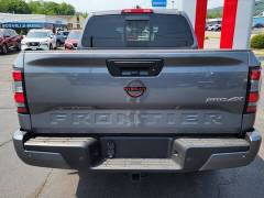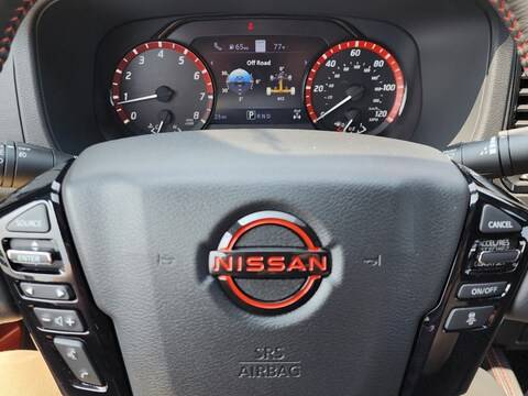 , [H01] FENDER AUDIO PACKAGE-inc: Partial Under-Seat Storage DeleteFender Premium Audio System w/10 Speakersdual subwoofer, [K93] OFF-ROAD PROTECTION PACKAGE, Brake Actuated Limited Slip Differential, Front Center Armrest and Rear Center Armrest, Airbag Occupancy Sensor, Body-Colored Door Handles, Rear Cupholder, GUN METALLIC, Double Wishbone Front Suspension w/Coil Springs, Towing Equipment -inc: Trailer Sway Control, 185 Amp Alternator, Day-Night Rearview Mirror, Front And Rear Anti-Roll Bars, Air Filtration, 3.692 Axle Ratio, Fade-To-Off Interior Lighting, Digital/Analog Appearance, Front Bucket Seats -inc: 6-way power driver's seat w/2-way manual lumbar support and 4-way manual front passenger's seat, Leather Gear Shifter Material, Outboard Front Lap And Shoulder Safety Belts -inc: Rear Center 3 PointHeight Adjusters and Pretensioners, [M92] USB CHARGING CABLE KIT, Power 1st Row Windows w/Driver 1-Touch Down, 60-40 Folding Split-Bench Front Facing Fold-Up Cushion Rear Seat, GVWR: 6 012 lbs, Cargo Lamp w/High Mount Stop Light, Gauges -inc: SpeedometerOdometerVoltmeterOil PressureEngine Coolant TempTachometerTrip Odometer and Trip Computer, Engine Auto Stop-Start Feature, Dual Stage Driver And Passenger Front Airbags, Fully Galvanized Steel Panels, Integrated Roof Antenna, Full Floor Console w/Covered StorageMini Overhead Console w/Storage and 1 12V DC Power Outlet, Full Carpet Floor Covering, RearView Monitor Back-Up Camera, Body-Colored Power Side Mirrors w/Manual Folding, Wheels: 17' Alloy -inc: Type Borange bi center cap, Power Door Locks w/Autolock Feature, Variable Intermittent Wipers, Black Grille, Dual Zone Front Automatic Air Conditioning, Tailgate Rear Cargo Access, Tires: P265/70R17 All Terrain, Body-Colored Front Bumper w/Metal-Look Rub Strip/Fascia Accent and 2 Tow Hooks, Curtain 1st And 2nd Row Airbags, 3 Skid Plates, Cruise Control w/Steering Wheel Controls, Remote Keyless Entry w/Integrated Key TransmitterIlluminated Entry and Panic Button, Black Side Windows TrimBlack Front Windshield Trim and Black Rear Window Trim, Transmission w/Driver Selectable Mode and Oil Cooler, Battery w/Run Down Protection, Leather/Metal-Look Steering Wheel, Leatherette Door Trim Insert, 2 LCD Monitors In The Front, Intelligent Auto Headlights (i-Ah) Auto On/Off Aero-Composite Led Low/High Beam Daytime Running Headlamps w/Delay-Off, Single Stainless Steel Exhaust, [K03] PRO CONVENIENCE PACKAGE-inc: Bed Under-Rail LightingRemote Engine Starter120V Power Outlet in BedHeated Front SeatsIntelligent Around View Monitor (I-AVM)Moving Object Detection (MOD) and off-road modeUtili-Track System2 adjustable tie-down cleatsSpray-In BedlinerTrailer Hitch w/Wiring HarnessVPC installed accessoryHeated Steering WheelWireless Charging For Personal DevicesHeated Outside Mirrors120V Power Outlet in Rear Center Console, Front Map Lights, Driver And Passenger Visor Vanity Mirrors w/Driver And Passenger Illumination, Part-Time Four-Wheel Drive, Radio: SXM/AM/FM/AUX/USB Audio System w/6 Speakers -inc: 9.0' color touch-screen displaywireless Apple CarPlayAndroid AutoBluetooth hands-free phone system and streaming (audio or text message)voice recognition for audio featuresSiri Eyes Free1 USB-A and 1 USB-C front portssteering wheel audio controlsNissan door to door navigationNissanConnect services and Wi-Fi hotspot, Electronic Stability Control (ESC), HVAC -inc: Underseat Ducts, Transmission: 9-Speed Automatic, 1220# Maximum Payload, PRO Embroidered Premium Cloth Seat Trim, Seats w/Cloth Back Material, ABS And Driveline Traction Control, Front Fog Lamps, Radio w/Seek-ScanClock and Radio Data System, Tire Pressure Monitoring (TPMS) with individual display Tire Specific Low Tire Pressure Warning, Immobilizer, CHARCOAL W/LAVA RED STITPRO EMBROIDERED PREMIUM CLOTH SEAT TRIM, Perimeter Alarm, Pickup Cargo Box Lights, 4-Wheel Disc Brakes w/4-Wheel ABSFront And Rear Vented DiscsBrake AssistHill Descent Control and Hill Hold Control, Driver Seat, Turn-By-Turn Navigation Directions, Full Cloth Headliner, Illuminated Locking Glove Box, Power Rear Windows, Full-Size Spare Tire Stored Underbody w/Crankdown, Off-Road Suspension, Bilstein Brand Name Shock Absorbers, Driver Information Center, Driver And Passenger Knee Airbag, Electronic Transfer Case, LED Brakelights, Manual Tailgate/Rear Door Lock, 1 12V DC Power Outlet, Delayed Accessory Power, Clearcoat Paint, Splash Guards, Passenger Seat, [F93] OFF-ROAD STYLE STEP RAILS, 1 Seatback Storage Pocket, [V02] TECHNOLOGY PACKAGE-inc: Rear Sonar SystemRear Automatic Braking (RAB)High Beam Assist (HBA)Blind Spot Warning (BSW)Rear Cross Traffic Alert (RCTA)Intelligent Cruise Control (ICC)Lane Departure Warning (LDW), Dual Stage Driver And Passenger Seat-Mounted Side Airbags, Interior Trim -inc: Metal-Look Instrument Panel Insert and Chrome/Metal-Look Interior Accents, Side Impact Beams, [L11] PRO-4X CARPETED FLOOR MATS, Steel Spare Wheel, [N93] ILLUMINATED KICK PLATES, Manual Anti-Whiplash Adjustable Front Head Restraints and Manual Adjustable Rear Head Restraints, Proximity Key For Doors And Push Button Start, Automatic Emergency Braking with Pedestrian Detection, Sliding Rear Window, Hydraulic Power-Assist Speed-Sensing Steering, [F96] ELECTRONIC TAILGATE LOCK, Trip Computer, Rear Child Safety Locks, Black Fender Flares, Driver Foot Rest, Driver Selectable Rear Locking Differential, Driver Monitoring-Alert, 21.1 Gal. Fuel Tank, Deep Tinted Glass, Solid Axle Rear Suspension w/Leaf Springs, Collision Mitigation-Front, [K11] TOW PACKAGE: HITCHTOW HARNESS, Body-Colored Rear Step Bumper, Engine: 3.8L DI DOHC 24-Valve V6, Manual Tilt Steering Column, Front Cupholder, Instrument Panel Covered BinDashboard StorageDriver / Passenger And Rear Door Bins and 2nd Row Underseat Storage, Regular Box Style, Auto Locking Hubs, [B94] PRO-4X MUD FLAPS