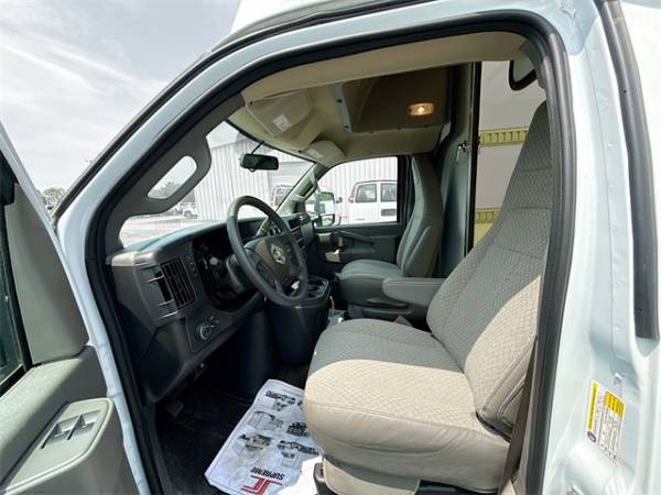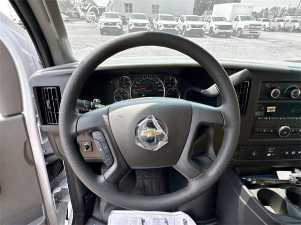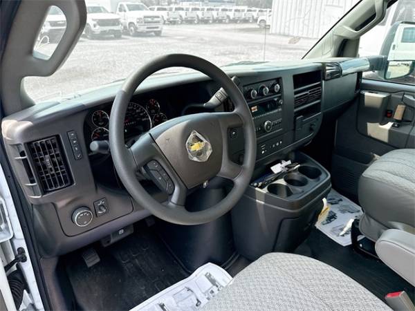 Summit White 2024 Chevrolet Express 3500 Work Van Cutaway RWD 4.3L V6 8-Speed Automatic with Overdrive2 Speakers, 3.42 Rear Axle Ratio, 4-Wheel Disc Brakes, ABS brakes, Air Conditioning, AM/FM radio, Antenna Equipment, Body Soft-Mount Donut & Bolt, Chrome Appearance Package, Chrome Grille, Cruise Control, Delay-off headlights, Driver & Front Passenger High-Back Bucket Seats, Driver Convenience Package, Driver door bin, Driver's Seat Mounted Armrest, Dual front impact airbags, Dual front side impact airbags, Electronic Stability Control, Emergency communication system: OnStar and Chevrolet connected services capable, Engine Cover Console w/Swing-Out Storage Bin, Exterior Parking Camera Rear, Front anti-roll bar, Front Bucket Seats, Front Chrome Bumper w/Step-Pad, Front wheel independent suspension, Fully automatic headlights, Heavy-Duty Locking Rear Differential, Inside Rearview Mirror w/Rr Vision Camera Display, Low tire pressure warning, Occupant sensing airbag, Overhead airbag, Passenger cancellable airbag, Passenger door bin, Passenger seat mounted armrest, Power Convenience Package, Power Door Locks w/Lock-Out Protection, Power steering, Power Windows, Preferred Equipment Group 1WT, Radio: AM/FM Stereo w/MP3 Player & Digital Clock, Reclining High-Back Bucket Seats w/Inboard Armrests, Remote Keyless Entry, Single Rear Wheel Configuration, Tachometer, Theft Alarm Notification, Tilt Steering Wheel, Traction control, Trip computer, Variably intermittent wipers, Vinyl Seat Trim, Voltmeter, Wheels: 16" x 6.5" 8-Lug Painted Steel HD (4), Wide-Stance Sail Panel Mounted Outside Mirrors. Price includes: $1500 - Chevrolet Consumer Cash Program. Exp. 09/30/2025