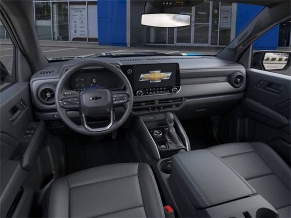Black 2025 Chevrolet Colorado Trail Boss 4WD 2.7L I4 Turbocharged DOHC 16V LEV3-ULEV50 310hp 8-Speed Automatic4WD, 3.42 Rear Axle Ratio, 4-Spoke Wrapped Steering Wheel, 4-Way Manual Passenger Seat Adjuster, 4-Wheel Disc Brakes, 6 Speakers, 6-Speaker Audio System Feature, 6-Way Manual Driver Seat Adjuster, 8-Way Power Driver Seat Adjuster, ABS brakes, Air Conditioning, Alloy wheels, AM/FM radio: SiriusXM, Apple CarPlay/Android Auto, Auto High-beam Headlights, Automatic Emergency Braking, Automatic temperature control, Brake assist, Chevy Safety Assist, Cloth Seat Trim, Compass, Delay-off headlights, Driver door bin, Driver vanity mirror, Dual front impact airbags, Dual front side impact airbags, Electronic Stability Control, Emergency communication system: OnStar, Evotex Seat Trim, Following Distance Indicator, Forward Collision Alert, Front anti-roll bar, Front Bucket Seats, Front Center Armrest, Front dual zone A/C, Front License Plate Kit, Front Pedestrian & Bicyclist Braking, Front wheel independent suspension, Heated door mirrors, Heated Driver & Front Passenger Seats, Heated Steering Wheel, Illuminated entry, IntelliBeam Automatic High Beam On/Off, Lane Keep Assist w/Lane Departure Warning, Low tire pressure warning, Navigation System, Occupant sensing airbag, Outside temperature display, Overhead airbag, Overhead console, Panic alarm, Passenger door bin, Passenger vanity mirror, Power door mirrors, Power Driver Lumbar Control Seat Adjuster, Power steering, Power windows, Preferred Equipment Group 0TR, Radio data system, Radio: 11.3" Diagonal Advanced Color LCD Display, Rear reading lights, Rear step bumper, Rear window defroster, Remote keyless entry, Remote Vehicle Starter System, Security system, SiriusXM Trial Subscription, Speed control, Speed-sensing steering, Split folding rear seat, Steering Wheel Mounted Audio Controls, Steering wheel mounted audio controls, Tachometer, Tilt steering wheel, Traction control, Trail Boss Convenience Package II, Trip computer, Variably intermittent wipers, Wheels: 18" x 8.5" Black High Gloss Aluminum, Wheels: 20" x 9" High Gloss Black Aluminum, Wireless Phone Charging, Wireless Phone Projection, 4WD. Price includes: $500 - Chevrolet Consumer Cash Program. Exp. 11/03/2025