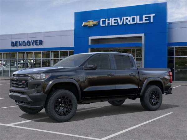Black 2026 Chevrolet Colorado Trail Boss 4WD 2.7L I4 Turbocharged DOHC 16V LEV3-ULEV50 310hp 8-Speed Automatic4WD, 3.42 Rear Axle Ratio, 4-Spoke Wrapped Steering Wheel, 4-Way Manual Passenger Seat Adjuster, 4-Wheel Disc Brakes, 6 Speakers, 6-Speaker Audio System Feature, 6-Way Manual Driver Seat Adjuster, 8-Way Power Driver Seat Adjuster, ABS brakes, Air Conditioning, Alloy wheels, AM/FM radio: SiriusXM with 360L, Apple CarPlay/Android Auto, Auto High-beam Headlights, Automatic Emergency Braking, Automatic temperature control, Black Spray-On Bedliner w/Chevrolet Logo, Brake assist, Chevy Safety Assist, Cloth Seat Trim, Compass, Delay-off headlights, Driver & Front Passenger Heated Seats, Driver door bin, Driver vanity mirror, Dual front impact airbags, Dual front side impact airbags, Electronic Stability Control, Emergency communication system: OnStar, Evotex Seat Trim, Following Distance Indicator, Forward Collision Alert, Front anti-roll bar, Front Bucket Seats, Front Center Armrest, Front dual zone A/C, Front License Plate Kit, Front Pedestrian & Bicyclist Braking, Front wheel independent suspension, Heated door mirrors, Heated Steering Wheel, Illuminated entry, IntelliBeam Automatic High Beam On/Off, Lane Keep Assist w/Lane Departure Warning, Low tire pressure warning, Navigation System, Occupant sensing airbag, Outside temperature display, Overhead airbag, Overhead console, Panic alarm, Passenger door bin, Passenger vanity mirror, Power door mirrors, Power Driver Lumbar Control Seat Adjuster, Power steering, Power windows, Preferred Equipment Group 0TR, Radio data system, Radio: 11.3" Diagonal Advanced Color LCD Display, Rear reading lights, Rear step bumper, Rear window defroster, Remote keyless entry, Remote Vehicle Starter System, Security system, SiriusXM w/360L Trial Subscription, Speed control, Speed-sensing steering, Split folding rear seat, Steering Wheel Mounted Audio Controls, Steering wheel mounted audio controls, Tachometer, Tilt steering wheel, Traction control, Trail Boss Convenience Package II, Trip computer, Variably intermittent wipers, Wheels: 18" x 8.5" Black High Gloss Aluminum, Wireless Phone Charging, Wireless Phone Projection, 4WD. Price includes: $500 - Chevrolet Consumer Cash Program. Exp. 11/03/2025