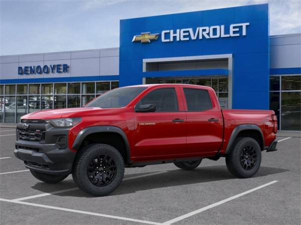 Radiant Red 2026 Chevrolet Colorado Trail Boss 4WD 2.7L I4 Turbocharged DOHC 16V LEV3-ULEV50 310hp 8-Speed Automatic4WD, 3.42 Rear Axle Ratio, 4-Spoke Wrapped Steering Wheel, 4-Way Manual Passenger Seat Adjuster, 4-Wheel Disc Brakes, 6 Speakers, 6-Speaker Audio System Feature, 6-Way Manual Driver Seat Adjuster, 8-Way Power Driver Seat Adjuster, ABS brakes, Air Conditioning, Alloy wheels, AM/FM radio: SiriusXM with 360L, Apple CarPlay/Android Auto, Auto High-beam Headlights, Automatic Emergency Braking, Automatic temperature control, Black Spray-On Bedliner w/Chevrolet Logo, Brake assist, Chevy Safety Assist, Cloth Seat Trim, Compass, Delay-off headlights, Driver & Front Passenger Heated Seats, Driver door bin, Driver vanity mirror, Dual front impact airbags, Dual front side impact airbags, Electronic Stability Control, Emergency communication system: OnStar, Evotex Seat Trim, Following Distance Indicator, Forward Collision Alert, Front anti-roll bar, Front Bucket Seats, Front Center Armrest, Front dual zone A/C, Front License Plate Kit, Front Pedestrian & Bicyclist Braking, Front wheel independent suspension, Heated door mirrors, Heated Steering Wheel, Illuminated entry, IntelliBeam Automatic High Beam On/Off, Lane Keep Assist w/Lane Departure Warning, Low tire pressure warning, Navigation System, Occupant sensing airbag, Outside temperature display, Overhead airbag, Overhead console, Panic alarm, Passenger door bin, Passenger vanity mirror, Power door mirrors, Power Driver Lumbar Control Seat Adjuster, Power steering, Power windows, Preferred Equipment Group 0TR, Radio data system, Radio: 11.3" Diagonal Advanced Color LCD Display, Rear reading lights, Rear step bumper, Rear window defroster, Remote keyless entry, Remote Vehicle Starter System, Security system, SiriusXM w/360L Trial Subscription, Speed control, Speed-sensing steering, Split folding rear seat, Steering Wheel Mounted Audio Controls, Steering wheel mounted audio controls, Tachometer, Tilt steering wheel, Traction control, Trail Boss Convenience Package II, Trip computer, Variably intermittent wipers, Wheels: 18" x 8.5" Black High Gloss Aluminum, Wireless Phone Charging, Wireless Phone Projection, 4WD. Price includes: $500 - Chevrolet Consumer Cash Program. Exp. 11/03/2025