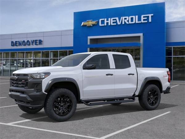 Summit White 2026 Chevrolet Colorado Trail Boss 4WD 2.7L I4 Turbocharged DOHC 16V LEV3-ULEV50 310hp 8-Speed Automatic4WD, 3.42 Rear Axle Ratio, 4-Spoke Wrapped Steering Wheel, 4-Way Manual Passenger Seat Adjuster, 4-Wheel Disc Brakes, 6 Speakers, 6-Speaker Audio System Feature, 6-Way Manual Driver Seat Adjuster, 8-Way Power Driver Seat Adjuster, ABS brakes, Adaptive Cruise Control, Air Conditioning, Alloy wheels, AM/FM radio: SiriusXM with 360L, Apple CarPlay/Android Auto, Auto High-beam Headlights, Automatic Emergency Braking, Automatic temperature control, Brake assist, Chevy Safety Assist, Cloth Seat Trim, Compass, Delay-off headlights, Driver & Front Passenger Heated Seats, Driver door bin, Driver vanity mirror, Dual front impact airbags, Dual front side impact airbags, Electronic Stability Control, Emergency communication system: OnStar, Evotex Seat Trim, Following Distance Indicator, Forward Collision Alert, Front anti-roll bar, Front Bucket Seats, Front Center Armrest, Front dual zone A/C, Front License Plate Kit, Front Pedestrian & Bicyclist Braking, Front wheel independent suspension, HD Surround Vision, Heated door mirrors, Heated Steering Wheel, Illuminated entry, IntelliBeam Automatic High Beam On/Off, Lane Keep Assist w/Lane Departure Warning, Low tire pressure warning, Navigation System, Occupant sensing airbag, Off-Road Assist Steps (LPO), Outside temperature display, Overhead airbag, Overhead console, Panic alarm, Passenger door bin, Passenger vanity mirror, Power door mirrors, Power Driver Lumbar Control Seat Adjuster, Power steering, Power windows, Preferred Equipment Group 0TR, Radio data system, Radio: 11.3" Diagonal Advanced Color LCD Display, Rear Pedestrian Alert, Rear reading lights, Rear step bumper, Rear window defroster, Remote keyless entry, Remote Vehicle Starter System, Security system, SiriusXM w/360L Trial Subscription, Speed control, Speed-sensing steering, Split folding rear seat, Steering Wheel Mounted Audio Controls, Steering wheel mounted audio controls, Tachometer, Technology Package, Tilt steering wheel, Traction control, Trail Boss Convenience Package II, Trip computer, Variably intermittent wipers, Wheels: 18" x 8.5" Black High Gloss Aluminum, Wheels: 20" x 9" High Gloss Black Aluminum, Wireless Phone Charging, Wireless Phone Projection, 4WD. Price includes: $500 - Chevrolet Consumer Cash Program. Exp. 11/03/2025