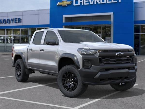 Sterling Gray Metallic 2026 Chevrolet Colorado Trail Boss 4WD 2.7L I4 Turbocharged DOHC 16V LEV3-ULEV50 310hp 8-Speed Automatic4WD, 3.42 Rear Axle Ratio, 4-Spoke Wrapped Steering Wheel, 4-Way Manual Passenger Seat Adjuster, 4-Wheel Disc Brakes, 6 Speakers, 6-Speaker Audio System Feature, 6-Way Manual Driver Seat Adjuster, 8-Way Power Driver Seat Adjuster, ABS brakes, Air Conditioning, Alloy wheels, AM/FM radio: SiriusXM with 360L, Apple CarPlay/Android Auto, Auto High-beam Headlights, Automatic Emergency Braking, Automatic temperature control, Black Spray-On Bedliner w/Chevrolet Logo, Brake assist, Chevy Safety Assist, Cloth Seat Trim, Compass, Delay-off headlights, Driver & Front Passenger Heated Seats, Driver door bin, Driver vanity mirror, Dual front impact airbags, Dual front side impact airbags, Electronic Stability Control, Emergency communication system: OnStar, Evotex Seat Trim, Following Distance Indicator, Forward Collision Alert, Front anti-roll bar, Front Bucket Seats, Front Center Armrest, Front dual zone A/C, Front License Plate Kit, Front Pedestrian & Bicyclist Braking, Front wheel independent suspension, Heated door mirrors, Heated Steering Wheel, Illuminated entry, IntelliBeam Automatic High Beam On/Off, Lane Keep Assist w/Lane Departure Warning, Low tire pressure warning, Navigation System, Occupant sensing airbag, Outside temperature display, Overhead airbag, Overhead console, Panic alarm, Passenger door bin, Passenger vanity mirror, Power door mirrors, Power Driver Lumbar Control Seat Adjuster, Power steering, Power windows, Preferred Equipment Group 0TR, Radio data system, Radio: 11.3" Diagonal Advanced Color LCD Display, Rear reading lights, Rear step bumper, Rear window defroster, Remote keyless entry, Remote Vehicle Starter System, Security system, SiriusXM w/360L Trial Subscription, Speed control, Speed-sensing steering, Split folding rear seat, Steering Wheel Mounted Audio Controls, Steering wheel mounted audio controls, Tachometer, Tilt steering wheel, Traction control, Trail Boss Convenience Package II, Trip computer, Variably intermittent wipers, Wheels: 18" x 8.5" Black High Gloss Aluminum, Wireless Phone Charging, Wireless Phone Projection, 4WD. Price includes: $500 - Chevrolet Consumer Cash Program. Exp. 11/03/2025