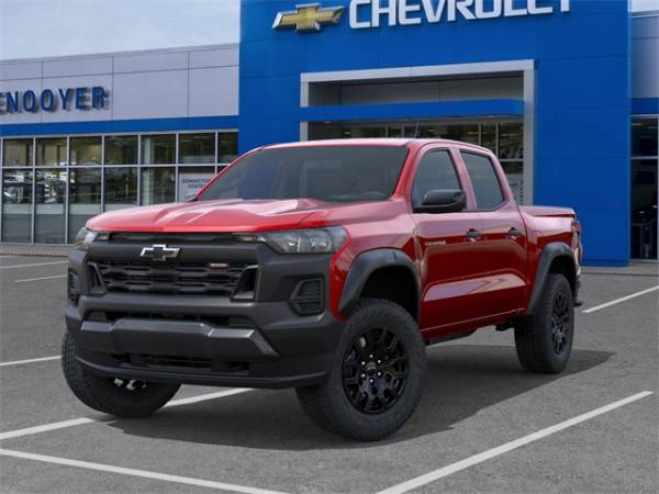 Radiant Red 2026 Chevrolet Colorado Trail Boss 4WD 2.7L I4 Turbocharged DOHC 16V LEV3-ULEV50 310hp 8-Speed Automatic4WD, 3.42 Rear Axle Ratio, 4-Spoke Wrapped Steering Wheel, 4-Way Manual Passenger Seat Adjuster, 4-Wheel Disc Brakes, 6 Speakers, 6-Speaker Audio System Feature, 6-Way Manual Driver Seat Adjuster, 8-Way Power Driver Seat Adjuster, ABS brakes, Air Conditioning, Alloy wheels, AM/FM radio: SiriusXM with 360L, Apple CarPlay/Android Auto, Auto High-beam Headlights, Automatic Emergency Braking, Automatic temperature control, Black Spray-On Bedliner w/Chevrolet Logo, Brake assist, Chevy Safety Assist, Cloth Seat Trim, Compass, Delay-off headlights, Driver & Front Passenger Heated Seats, Driver door bin, Driver vanity mirror, Dual front impact airbags, Dual front side impact airbags, Electronic Stability Control, Emergency communication system: OnStar, Evotex Seat Trim, Following Distance Indicator, Forward Collision Alert, Front anti-roll bar, Front Bucket Seats, Front Center Armrest, Front dual zone A/C, Front License Plate Kit, Front Pedestrian & Bicyclist Braking, Front wheel independent suspension, Heated door mirrors, Heated Steering Wheel, Illuminated entry, IntelliBeam Automatic High Beam On/Off, Lane Keep Assist w/Lane Departure Warning, Low tire pressure warning, Navigation System, Occupant sensing airbag, Outside temperature display, Overhead airbag, Overhead console, Panic alarm, Passenger door bin, Passenger vanity mirror, Power door mirrors, Power Driver Lumbar Control Seat Adjuster, Power steering, Power windows, Preferred Equipment Group 0TR, Radio data system, Radio: 11.3" Diagonal Advanced Color LCD Display, Rear reading lights, Rear step bumper, Rear window defroster, Remote keyless entry, Remote Vehicle Starter System, Security system, SiriusXM w/360L Trial Subscription, Speed control, Speed-sensing steering, Split folding rear seat, Steering Wheel Mounted Audio Controls, Steering wheel mounted audio controls, Tachometer, Tilt steering wheel, Traction control, Trail Boss Convenience Package II, Trip computer, Variably intermittent wipers, Wheels: 18" x 8.5" Black High Gloss Aluminum, Wireless Phone Charging, Wireless Phone Projection, 4WD. Price includes: $500 - Chevrolet Consumer Cash Program. Exp. 11/03/2025