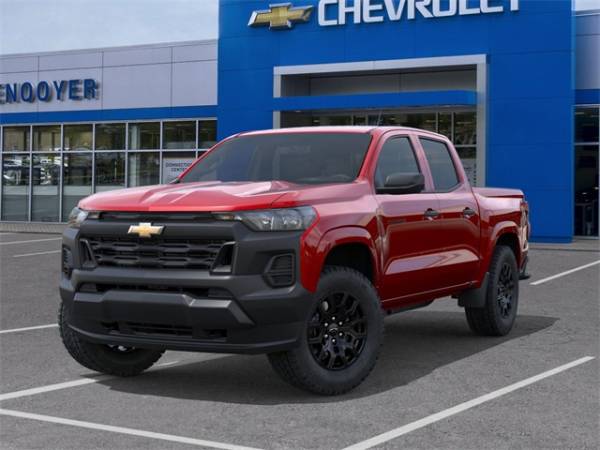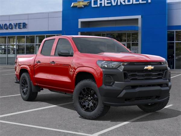 Radiant Red 2026 Chevrolet Colorado Work Truck 4WD 2.7L I4 Turbocharged DOHC 16V LEV3-ULEV50 310hp 8-Speed Automatic4WD, 3.42 Rear Axle Ratio, 4-Spoke Wrapped Steering Wheel, 4-Way Manual Passenger Seat Adjuster, 4-Wheel Disc Brakes, 6 Speakers, 6-Speaker Audio System Feature, 6-Way Manual Driver Seat Adjuster, 8-Way Power Driver Seat Adjuster, ABS brakes, Air Conditioning, AM/FM radio: SiriusXM with 360L, Apple CarPlay/Android Auto, Auto High-beam Headlights, Automatic Emergency Braking, Black Nameplates (LPO), Black Spray-On Bedliner, Brake assist, Chevy Safety Assist, Cloth Seat Trim, Delay-off headlights, Driver door bin, Driver vanity mirror, Dual front impact airbags, Dual front side impact airbags, Electronic Stability Control, Emergency communication system: OnStar, EZ-Lift & Lower Tailgate, Following Distance Indicator, Forward Collision Alert, Front anti-roll bar, Front Bucket Seats, Front Center Armrest, Front License Plate Kit, Front Pedestrian & Bicyclist Braking, Front wheel independent suspension, Heated door mirrors, IntelliBeam Automatic High Beam On/Off, Lane Keep Assist w/Lane Departure Warning, Low tire pressure warning, Navigation System, Occupant sensing airbag, Overhead airbag, Panic alarm, Passenger door bin, Passenger vanity mirror, Power door mirrors, Power Driver Lumbar Control Seat Adjuster, Power steering, Power windows, Preferred Equipment Group 4WT, Radio data system, Radio: 11.3" Diagonal Advanced Color LCD Display, Rear step bumper, Rear window defroster, Remote keyless entry, Security system, SiriusXM w/360L Trial Subscription, Speed control, Speed-sensing steering, Split folding rear seat, Steering Wheel Mounted Audio Controls, Steering wheel mounted audio controls, StowFlex Tailgate Storage Compartment, Tachometer, Tailgate Keyed Cylinder Lock, Tilt steering wheel, Traction control, Trip computer, Variably intermittent wipers, Wheels: 17" x 8" Ultra Silver Metallic Steel, Wheels: 18" x 8.5" Black High Gloss Aluminum, Wireless Phone Projection, WT Convenience Package II, WT Custom Package, 4WD. Price includes: $1000 - Chevrolet Consumer Cash Program. Exp. 11/03/2025