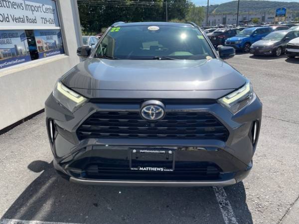 Matthews Import Center promises each customer a thorough and confident 120-point inspection on our used inventory, guaranteeing a relaxing and peace-of-mind experience. We are located behind Lowes in Vestal, NY. Or call us at (607) 729 - 6261Matthews Import Center3013 Old Vestal RoadVestal, NY 13850. Gray 2022 Toyota XSE RAV4 Hybrid AWD eCVT 2.5L 4-CylinderOdometer is 1651 miles below market average! 41/38 City/Highway MPG