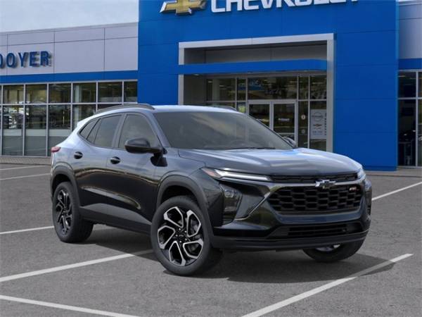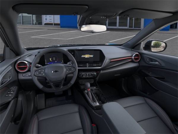 Black 2025 Chevrolet Trax 2RS FWD 1.2L Ecotec Turbo DOHC DI w/VVT 6-Speed Automatic2-Way Adjustable Front Head Restraints, 2-Way Power Driver Lumbar Seat Adjuster, 3.50 Final Drive Axle Ratio, 4-Way Manual Front Passenger Seat Adjuster, 4-Wheel Disc Brakes, 6 Speakers, 6-Speaker Audio System Feature, 8-Way Power Driver Seat Adjuster, ABS brakes, Adaptive Cruise Control, Air Conditioning, Alloy wheels, AM/FM radio: SiriusXM, Auto High-beam Headlights, Automatic temperature control, Brake assist, Bumpers: body-color, Compass, Delay-off headlights, Driver Confidence Package, Driver door bin, Driver vanity mirror, Dual front impact airbags, Dual front side impact airbags, Electronic Stability Control, Emergency communication system: OnStar One Essentials, Evotex Seat Trim, Exterior Parking Camera Rear, Front & Rear All-Weather Floor Liners (LPO), Front & Rear Custom Molded Splash Guards, Front anti-roll bar, Front Bucket Seats, Front Center Armrest, Front reading lights, Front wheel independent suspension, Fully automatic headlights, Heated door mirrors, Heated Driver & Front Passenger Seats, Heated Front Seats, Heated steering wheel, Illuminated entry, Lane Change Alert w/Side Blind Zone Alert, Leather steering wheel, License Plate Front Mounting Package, Low tire pressure warning, Occupant sensing airbag, Outside temperature display, Overhead airbag, Overhead console, Panic alarm, Passenger door bin, Passenger vanity mirror, Power door mirrors, Power steering, Power windows, Preferred Equipment Group 2RS, Premium audio system: Chevrolet Infotainment 3, Radio data system, Radio: AM/FM Stereo Audio System, Rear Cross-Traffic Alert, Rear Park Assist, Rear window defroster, Rear window wiper, Remote keyless entry, Security system, SiriusXM Trial Subscription, Speed control, Split folding rear seat, Spoiler, Sport steering wheel, Steering wheel mounted audio controls, Tachometer, Telescoping steering wheel, Tilt steering wheel, Traction control, Trip computer, Variably intermittent wipers, Wheels: 19" Black-Painted Machined Aluminum.Recent Arrival! 28/32 City/Highway MPG