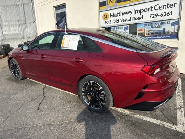 Matthews Import Center promises each customer a thorough and confident 120-point inspection on our used inventory, guaranteeing a relaxing and peace-of-mind experience. We are located behind Lowes in Vestal, NY. Or call us at (607) 729 - 6261Matthews Import Center3013 Old Vestal RoadVestal, NY 13850. Certified. Passion Red 2023 Kia GT-Line K5 AWD 8-Speed Automatic 1.6L I4 DGI Turbocharged DOHC 16V LEV3-ULEV70 180hpOdometer is 9044 miles below market average! 25/33 City/Highway MPGKia Certified Pre-Owned Details: * Limited Warranty: 12 Month/12,000 Mile (whichever comes first) "Platinum Coverage" from certified purchase date * Powertrain Limited Warranty: 120 Month/100,000 Mile (whichever comes first) from original in-service date * Warranty Deductible: $50 * 165 Point Inspection * Vehicle History * Transferable Warranty * Includes Rental Car and Trip Interruption Reimbursement. 3 month Sirius trial subscription * Roadside Assistance