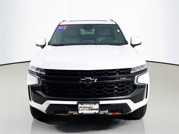 Clean CARFAX. Summit White 2023 Chevrolet Tahoe Z71 4WD 10-Speed Automatic with Overdrive EcoTec3 5.3L V8 4WD, Black Leather, 10-Way Power Driver & Passenger Seat Adjusters, 1st & 2nd Row Color-Keyed Carpeted Floor Mats, 2-Speed Active Electronic AutoTrac Transfer Case, 2nd Row Pwr Release 60/40 Split-Folding Bench Seat, 3.23 Rear Axle Ratio, 3rd Row 60/40 Power-Folding Split-Bench Seat, 3rd row seats: split-bench, 4-Wheel Disc Brakes, 9 Speakers, ABS brakes, Advanced Trailering Package, Air Conditioning, Air Ride Adaptive Suspension, Alloy wheels, AM/FM radio: SiriusXM with 360L, Apple CarPlay/Android Auto, Auto High-beam Headlights, Auto-Dimming Inside Rear-View Mirror, Auto-dimming Rear-View mirror, Automatic temperature control, Black Tubular Assist Steps, Bose 9-Speaker Stereo Audio System Feature, Brake assist, Bright Front & Rear Door Sill Plates, Bumpers: body-color, Color-Keyed Carpeting Floor Covering, Compass, Delay-off headlights, Driver & Front Outboard Passenger Airbags, Driver Alert Package, Driver door bin, Driver vanity mirror, Dual front impact airbags, Dual front side impact airbags, Dual-Pane Power Panoramic Sunroof, Electronic Limited-Slip Differential, Electronic Stability Control, Emergency communication system: OnStar and Chevrolet connected services capable, Enhanced Driver Information Center, Extra Capacity Cooling System, Floor Console w/Storage Area, Four wheel independent suspension, Front anti-roll bar, Front Bucket Seats, Front Center Armrest, Front dual zone A/C, Front High-Approach Angle Fascia, Front High-Back Reclining Bucket Seats, Front reading lights, Fully automatic headlights, Garage door transmitter, Hands-Free Rear Power Programmable Liftgate, HD Surround Vision, Heated 2nd Row Outboard Seats, Heated door mirrors, Heated Driver & Front Passenger Seats, Heated Front Seats, Heated Steering Wheel, Hill Descent Control, Hitch Guidance w/Hitch View, Illuminated entry, Infotainment Display, Integrated Trailer Brake Controller, Lane Change Alert w/Side Blind Zone Alert, Leather-Appointed Seat Trim, LED Daytime Running Lamps, License Plate Front Mounting Package, Low tire pressure warning, Luxury Package, Magnetic Ride Control Suspension, Max Trailering Package, Memory seat, Memory Settings, Memory Settings for Driver, Navigation System, Occupant sensing airbag, Off-Road Capability Package, Outside Heated Power-Adjustable Mirrors, Outside temperature display, Overhead airbag, Overhead console, Panic alarm, Passenger door bin, Passenger vanity mirror, Power door mirrors, Power driver seat, Power Liftgate, Power passenger seat, Power Release 2nd Row Bucket Seats, Power steering, Power Tilt & Telescopic Steering Column, Power windows, Preferred Equipment Group 2Z7, Premium audio system: Chevrolet Infotainment 3 Premium, Premium Smooth Ride Suspension, Radio: Chevrolet Infotainment 3 Premium System, Rain sensing wipers, Rear air conditioning, Rear anti-roll bar, Rear Cross Traffic Alert, Rear Pedestrian Alert, Rear reading lights, Rear seat center armrest, Rear window defroster, Rear window wiper, Red Horizontal-Mounted Recovery Hooks, Remote keyless entry, Remote Start, Roof rack: rails only, Security system, SiriusXM Radio w/360L, Smart Trailer Integration Indicator, Speed control, Speed-sensing steering, Split folding rear seat, Spoiler, Steering wheel mounted audio controls, Tachometer, Telescoping steering wheel, Tilt steering wheel, Traction control, Trip computer, Universal Home Remote, Variably intermittent wipers, Voltmeter, Wheels: 20" x 9" Machined Aluminum, Wireless Charging, Wrapped Steering Wheel, Z71 Off-Road Package, 4WD, Black Leather.Please reach out to schedule an appointment for a viewing @ 518-458-7700 www.denooyerchevrolet.com.