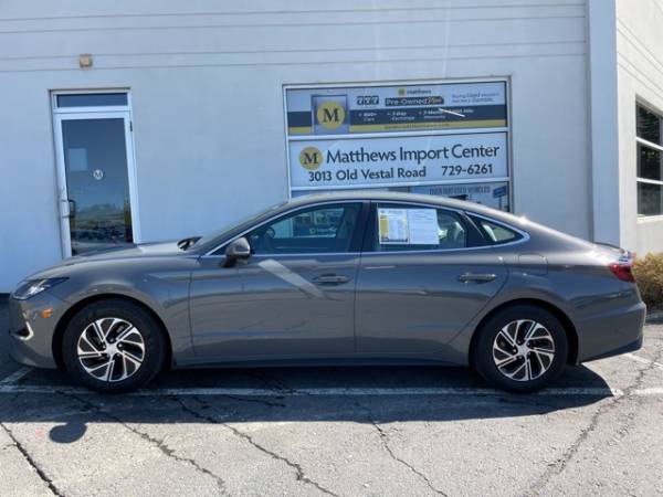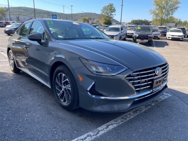 Matthews Import Center promises each customer a thorough and confident 120-point inspection on our used inventory, guaranteeing a relaxing and peace-of-mind experience. We are located behind Lowes in Vestal, NY. Or call us at (607) 729 - 6261Matthews Import Center3013 Old Vestal RoadVestal, NY 13850. Hampton Gray 2023 Hyundai Blue Sonata Hybrid FWD 6-Speed Automatic with Shiftronic I450/54 City/Highway MPG