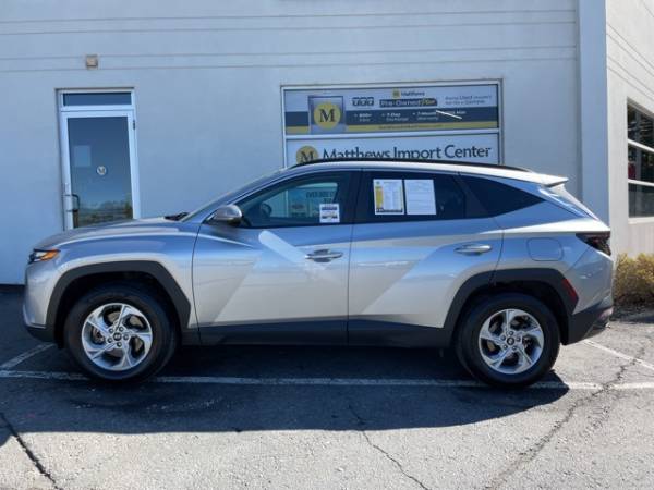 Matthews Import Center promises each customer a thorough and confident 120-point inspection on our used inventory, guaranteeing a relaxing and peace-of-mind experience. We are located behind Lowes in Vestal, NY. Or call us at (607) 729 - 6261Matthews Import Center3013 Old Vestal RoadVestal, NY 13850. Shimmering Silver 2023 Hyundai SEL Tucson AWD 8-Speed Automatic with SHIFTRONIC 2.5L I4 DGI DOHC 16V LEV3-ULEV70 187hpRecent Arrival! Odometer is 2549 miles below market average! 23/28 City/Highway MPG