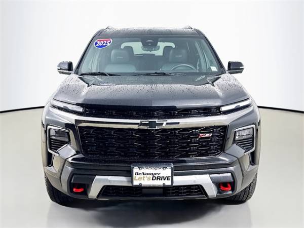 Clean CARFAX. Black Metallic 2025 Chevrolet Traverse Z71 AWD 8-Speed Automatic 2.5L DOHC AWD, 3 Years of Super Cruise/Digital Services by OnStar, 3rd row seats: split-bench, 4-Way Manual Front Passenger Seat Adjuster, 4-Wheel Disc Brakes, 6 Speakers, 6-Speaker Audio System Feature, 8-Way Power Driver Seat Adjuster, ABS brakes, Air Conditioning, Alloy wheels, AM/FM radio: SiriusXM with 360L, Apple CarPlay/Android Auto, Auto High-beam Headlights, Automatic temperature control, Bose Premium 12-Speaker Audio System Feature, Brake assist, Child-Seat-Sensing Airbag, Compass, Delay-off headlights, Driver Attention Assist, Driver Confidence Package, Driver door bin, Driver vanity mirror, Dual front impact airbags, Dual front side impact airbags, Electronic Stability Control, Emergency communication system: OnStar, Enhanced Automatic Parking Assist, Enhanced Driving Package, Evotex Seat Trim, Four wheel independent suspension, Front anti-roll bar, Front Bucket Seats, Front Center Armrest, Front dual zone A/C, Front reading lights, Fully automatic headlights, HD Surround Vision, Heated door mirrors, Heated Front Seats, Heated steering wheel, Illuminated entry, Low tire pressure warning, Navigation System, Occupant sensing airbag, Outside temperature display, Overhead airbag, Overhead console, Panic alarm, Passenger door bin, Passenger vanity mirror, Power door mirrors, Power driver seat, Power Dual Glass Panoramic Sliding Sunroof, Power Liftgate, Power Outlet, Power steering, Power windows, Preferred Equipment Group 2Z7, Radio data system, Radio: Audio System w/17.7" Diagonal Display, Rear air conditioning, Rear anti-roll bar, Rear Camera Mirror, Rear Pedestrian Alert, Rear reading lights, Rear window defroster, Rear window wiper, Remote keyless entry, Security system, SiriusXM w/360L Trial Subscription, Speed control, Speed-sensing steering, Spoiler, Steering wheel mounted audio controls, Super Cruise, Tachometer, Telescoping steering wheel, Tilt steering wheel, Traction control, Traffic Sign Recognition, Trip computer, Turn signal indicator mirrors, Variably intermittent wipers, Voltmeter, Wheels: 18" High Gloss Black Painted Aluminum, AWD.Please reach out to schedule an appointment for a viewing @ 518-458-7700 www.denooyerchevrolet.com. Recent Arrival! Odometer is 2141 miles below market average!