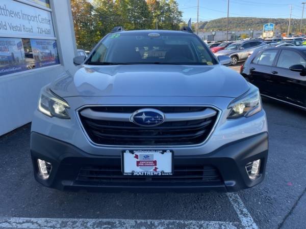 Certified. Ice Silver Metallic 2022 Subaru Outback Premium AWD CVT Lineartronic 2.5L 4-Cylinder DOHC 16V26/33 City/Highway MPGSubaru Certified Pre-Owned Details: * 152 Point Inspection * Vehicle History * Transferable Warranty * Roadside Assistance * Powertrain Limited Warranty: 84 Month/100,000 Mile (whichever comes first) from original in-service date * SiriusXM 3-Month trial subscription, $500 Owner Loyalty coupon & 1 year trial subscription to STARLINK * Warranty Deductible: $0Matthews Import Center promises each customer a thorough and confident 120-point inspection on our used inventory, guaranteeing a relaxing and peace-of-mind experience. We are located behind Lowes in Vestal, NY. Or call us at (607) 729 - 6261 Matthews Import Center 3013 Old Vestal Road Vestal, NY 13850.Odometer is 30497 miles below market average!