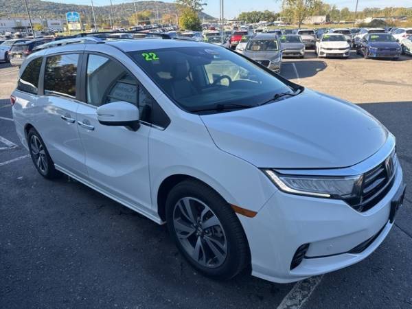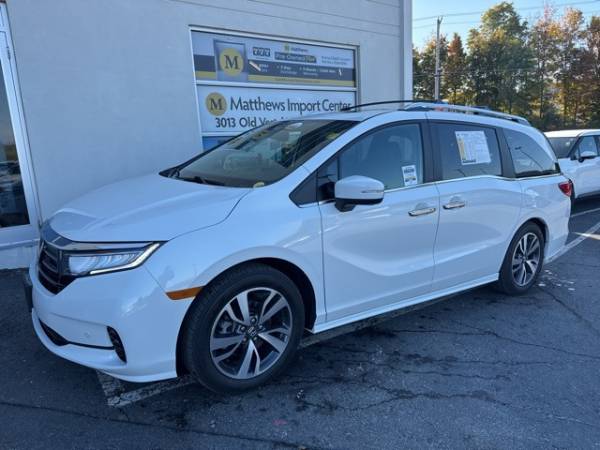 Matthews Import Center promises each customer a thorough and confident 120-point inspection on our used inventory, guaranteeing a relaxing and peace-of-mind experience. We are located behind Lowes in Vestal, NY. Or call us at (607) 729 - 6261Matthews Import Center3013 Old Vestal RoadVestal, NY 13850. White 2022 Honda Touring Odyssey FWD 10-Speed Automatic 3.5L V6 SOHC i-VTEC 24V19/28 City/Highway MPG