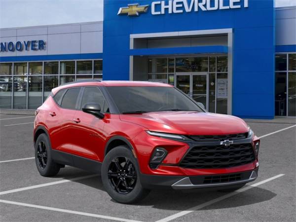 Radiant Red 2025 Chevrolet Blazer LT AWD 2.0L Turbocharged 9-Speed Automatic with OverdriveAWD, 170 Amp Alternator, 3.47 Final Drive Axle Ratio, 4-Way Manual Front Passenger Seat Adjuster, 4-Wheel Disc Brakes, 6 Speakers, 6-Speaker Audio System Feature, 8-Way Power Driver Seat Adjuster, ABS brakes, Air Conditioning, Alloy wheels, AM/FM radio: SiriusXM with 360L, Apple CarPlay/Android Auto, Auto High-beam Headlights, Automatic temperature control, Brake assist, Bumpers: body-color, Child-Seat-Sensing Airbag, Compass, Delay-off headlights, Driver door bin, Driver vanity mirror, Dual front impact airbags, Dual front side impact airbags, Electronic Stability Control, Emergency communication system: OnStar and Chevrolet connected services capable, Four wheel independent suspension, Front anti-roll bar, Front Bucket Seats, Front Center Armrest, Front dual zone A/C, Front reading lights, Fully automatic headlights, Heated door mirrors, Heated Driver & Front Passenger Seats, Heated Front Seats, Illuminated entry, Knee airbag, Leather Shift Knob, Low tire pressure warning, Occupant sensing airbag, Outside temperature display, Overhead airbag, Overhead console, Panic alarm, Passenger door bin, Passenger vanity mirror, Power door mirrors, Power Driver Lumbar Control, Power driver seat, Power steering, Power windows, Premium audio system: Chevrolet Infotainment 3 Plus, Premium Cloth Seat Trim, Radio data system, Radio: Chevrolet Infotainment 3 Plus System, Rear anti-roll bar, Rear reading lights, Rear seat center armrest, Rear window defroster, Rear window wiper, Remote keyless entry, Ride & Handling Suspension, Security system, SiriusXM w/360L, Speed control, Speed-sensing steering, Split folding rear seat, Spoiler, Steering wheel mounted audio controls, Stop-Start Engine Control System, Tachometer, Telescoping steering wheel, Tilt steering wheel, Traction control, Trip computer, Variably intermittent wipers, Voltmeter, Wheels: 18" Grazen Metallic Aluminum, AWD.Recent Arrival! 22/27 City/Highway MPG Price includes: $1000 - Chevrolet Consumer Cash Program. Exp. 11/03/2025