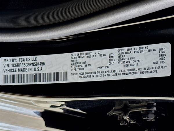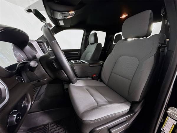 Clean CARFAX. Diamond Black Crystal Pearlcoat 2023 Ram 1500 Big Horn/Lone Star 4WD 8-Speed Automatic 3.6L V6 24V VVT 3 Rear Seat Head Restraints, 4 Way Front Headrests, 4-Wheel Disc Brakes, 48V Belt Starter Generator, 6 Speakers, ABS brakes, Air Conditioning, Alloy wheels, AM/FM radio, Big Horn Badge, Black Exterior Mirrors, Brake assist, Bumpers: chrome, Cloth Bench Seat, Compass, Convex Wide-Angle Mirror Insert, Delay-off headlights, Driver door bin, Dual front impact airbags, Dual front side impact airbags, Electronic Stability Control, Emergency communication system: SiriusXM Guardian, For Details, Visit DriveUconnect.com, Front anti-roll bar, Front Center Armrest w/Storage, Front License Plate Bracket, Front reading lights, Front Seat Back Map Pockets, Front wheel independent suspension, Fully automatic headlights, GPS Antenna Input, Heated door mirrors, Illuminated entry, Integrated Voice Command w/Bluetooth, Leather steering wheel, Low tire pressure warning, Manual Adjust 4-Way Front Passenger Seat, MOPAR Front & Rear Rubber Floor Mats, Occupant sensing airbag, Outside temperature display, Overhead airbag, Overhead console, Panic alarm, ParkView Rear Back-Up Camera, Passenger door bin, Passenger vanity mirror, Power door mirrors, Power steering, Power windows, Quick Order Package 23Z Big Horn, Radio data system, Radio: Uconnect 3 w/5" Display, Rear 60/40 Folding Seat, Rear anti-roll bar, Rear seat center armrest, Rear step bumper, Remote keyless entry, Remote Start System, Speed control, Split folding rear seat, Steering wheel mounted audio controls, Tachometer, Telescoping steering wheel, Tilt steering wheel, Traction control, Trip computer, Variably intermittent wipers, Voltmeter, Wheels: 18" x 8" Cast-Aluminum Painted.Please reach out to schedule an appointment for a viewing @ 518-458-7700 www.denooyerchevrolet.com. Recent Arrival! Odometer is 17843 miles below market average!
