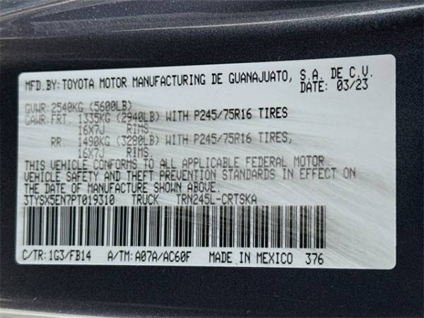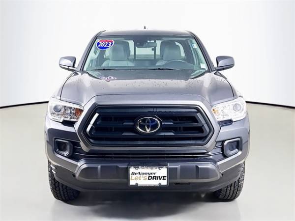 Magnetic Gray 2023 Toyota Tacoma SR 4WD 6-Speed Automatic 2.7L SMPI DOHC 4WD, 16" Styled Steel Wheels, 6 Speakers, ABS brakes, Air Conditioning, All Weather Floor Liner & Door Sill Protector (TMS), AM/FM radio: SiriusXM, Anti-whiplash front head restraints, Apple CarPlay/Android Auto, Auto High-beam Headlights, Axle Ratio: 4.30, Brake assist, Bumpers: body-color, Driver door bin, Dual front impact airbags, Dual front side impact airbags, Electronic Stability Control, Emergency communication system: Safety Connect (1-year trial), Exterior Parking Camera Rear, Fabric Seat Trim, Front anti-roll bar, Front Bucket Seats, Front Center Armrest, Front reading lights, Front Seats, Front wheel independent suspension, Heated door mirrors, Illuminated entry, Knee airbag, Low tire pressure warning, Occupant sensing airbag, Outside temperature display, Overhead airbag, Overhead console, Passenger cancellable airbag, Passenger door bin, Power door mirrors, Power steering, Power windows, Quick Charge Cable (TMS), Radio: Audio, Rear step bumper, Remote Keyless Entry, Speed control, Speed-sensing steering, SR Convenience Package, Steering wheel mounted audio controls, Tachometer, Tailgate Emblem (TMS), Telescoping steering wheel, Tilt steering wheel, Traction control, Variably intermittent wipers, 4WD.Please reach out to schedule an appointment for a viewing @ 518-458-7700 www.denooyerchevrolet.com. Recent Arrival! Odometer is 11545 miles below market average!