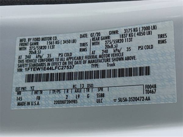 Clean CARFAX. Oxford White 2020 Ford F-150 XLT 4WD 10-Speed Automatic 3.5L V6 EcoBoost 4WD, 110V/400W Outlet, 2-Bar Style Grille w/2 Minor Bars Painted Dark, 2-Bar Style Grille w/Chrome 2 Minor Bars, 4-Wheel Disc Brakes, 4.2" Productivity Screen in Instrument Cluster, 6 Speakers, 8-Way Power Driver Seat, ABS brakes, Accent-Color Step Bars, Air Conditioning, Alloy wheels, AM/FM radio, Auto High-beam Headlights, Auto-Dimming Rear-View Mirror, BLIS Blind Spot Information System, Body-Color Door & Tailgate Handles, Body-Color Front & Rear Bumpers, Box Side Decals, Brake assist, Bumpers: chrome, Chrome Door & Tailgate Handles w/Body-Color Bezel, Chrome Step Bars, Class IV Trailer Hitch Receiver, Cloth 40/20/40 Front Seat, Compass, Delay-off headlights, Driver door bin, Driver vanity mirror, Dual front impact airbags, Dual front side impact airbags, Electronic Stability Control, Emergency communication system: SYNC 3 911 Assist, Engine Oil Cooler, Equipment Group 302A Luxury, Extended Range 36 Gallon Fuel Tank, Exterior Parking Camera Rear, Fixed Backlight w/Privacy Glass, Front anti-roll bar, Front Center Armrest w/Storage, Front fog lights, Front License Plate Bracket, Front wheel independent suspension, Fully automatic headlights, FX4 Off-Road Package, Heated Front Seats, Illuminated entry, Integrated Trailer Brake Controller, Leather-Wrapped Steering Wheel, LED Box Lighting, LED Sideview Mirror Spotlights, Low tire pressure warning, Max Trailer Tow Package, Occupant sensing airbag, Outside temperature display, Overhead airbag, Panic alarm, Passenger door bin, Passenger vanity mirror, Power door mirrors, Power Glass Heated Sideview Mirrors, Power steering, Power windows, Power-Adjustable Pedals, Power-Sliding Rear Window, Pro Trailer Backup Assist, Radio data system, Radio: AM/FM Stereo w/6 Speakers, Rear step bumper, Rear Under-Seat Storage, Rear Window Defroster, Remote keyless entry, Reverse Sensing System, Security system, Single-Tip Chrome Exhaust, SiriusXM Radio, Speed control, Speed-sensing steering, Split folding rear seat, Steering wheel mounted audio controls, SYNC 3, Tachometer, Tailgate Step w/Tailgate Lift Assist, Telescoping steering wheel, Tilt steering wheel, Tough Bed Spray-In Bedliner, Traction control, Tray Style Floor Liner, Twin Panel Moonroof, Upgraded Front Stabilizer Bar, Variably intermittent wipers, Voice-Activated Touchscreen Navigation, Voltmeter, Wheels: 17" Silver Painted Aluminum, Wheels: 18" 6-Spoke Machined-Aluminum, Wheels: 18" Chrome-Like PVD, Wheels: 20" 6-Spoke Dark Alloy Painted, XLT Chrome Appearance Package, XLT Power Equipment Group, XLT Sport Appearance Package, 4WD.Please reach out to schedule an appointment for a viewing @ 518-458-7700 www.denooyerchevrolet.com. Recent Arrival! Odometer is 36018 miles below market average!