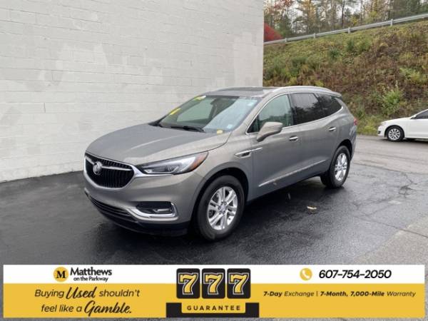 Matthews Import Center promises each customer a thorough and confident 120-point inspection on our used inventory, guaranteeing a relaxing and peace-of-mind experience. We are located behind Lowes in Vestal, NY. Or call us at (607) 729 - 6261Matthews Import Center3013 Old Vestal RoadVestal, NY 13850. Summit White 2023 Buick Essence Enclave FWD 9-Speed Automatic 3.6L V6 SIDI VVT18/26 City/Highway MPG