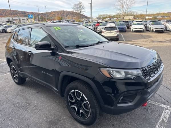 Matthews Import Center promises each customer a thorough and confident 120-point inspection on our used inventory, guaranteeing a relaxing and peace-of-mind experience. We are located behind Lowes in Vestal, NY. Or call us at (607) 729 - 6261Matthews Import Center3013 Old Vestal RoadVestal, NY 13850. Diamond Black Crystal Pearlcoat 2024 Jeep Trailhawk Compass 4WD 8-Speed Automatic 2.0L I4 DOHCOdometer is 4297 miles below market average! 24/32 City/Highway MPG