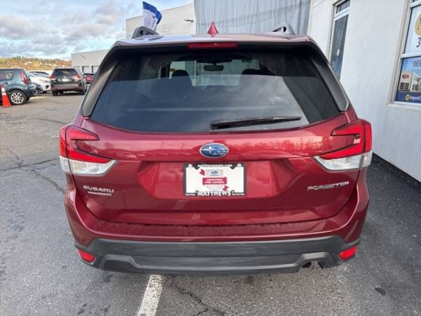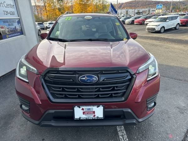 Matthews Import Center promises each customer a thorough and confident 120-point inspection on our used inventory, guaranteeing a relaxing and peace-of-mind experience. We are located behind Lowes in Vestal, NY. Or call us at (607) 729 - 6261Matthews Import Center3013 Old Vestal RoadVestal, NY 13850. Certified. Crimson Red Pearl 2022 Subaru Premium Forester AWD Lineartronic CVT 2.5L 4-Cylinder DOHC 16VOdometer is 14756 miles below market average! 26/33 City/Highway MPGSubaru Certified Pre-Owned Details: * Roadside Assistance * 152 Point Inspection * SiriusXM 3-Month trial subscription, $500 Owner Loyalty coupon & 1 year trial subscription to STARLINK * Transferable Warranty * Vehicle History * Powertrain Limited Warranty: 84 Month/100,000 Mile (whichever comes first) from original in-service date * Warranty Deductible: $0