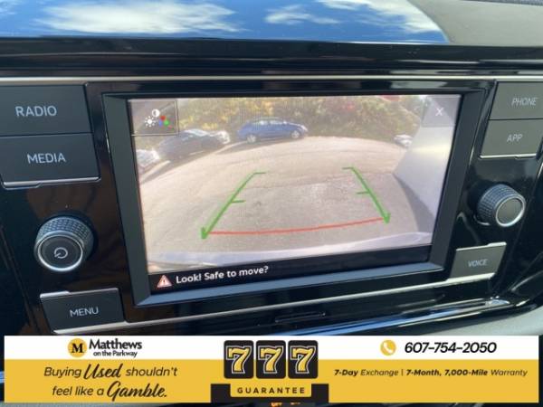 5.20 Axle Ratio,17" Silver Alloy Wheels,Heated Front Bucket Seats,Cloth Seating Surfaces,Front Strut Rear Multi-Link Suspension,Radio: Composition Color AM/FM,VW Care,First Aid Kit,Roadside Assistance Kit,Combination Roadside Kit,Rubber Mats Kit (SNM) (DISC),4-Wheel Disc Brakes,Emergency communication system: Car-Net,Exterior Parking Camera Rear,Compass,Front beverage holders,Variably intermittent wipers,Trip computer,Traction control,Tilt steering wheel,Telescoping steering wheel,Steering wheel mounted audio controls,Split folding rear seat,Speed-sensing steering,Speed control,Roof rack: rails only,Remote keyless entry,Rear window wiper,Rear window defroster,Rear seat center armrest,Rear anti-roll bar,Radio data system,Power windows,Power steering,Power door mirrors,Passenger vanity mirror,Passenger door bin,Panic alarm,Overhead console,Overhead airbag,Outside temperature display,Occupant sensing airbag,Low tire pressure warning,Illuminated entry,Heated front seats,Heated door mirrors,Fully automatic headlights,Front reading lights,Front anti-roll bar,Four wheel independent suspension,Dual front side impact airbags,Dual front impact airbags,Driver vanity mirror,Driver door bin,Delay-off headlights,Bumpers: body-color,Brake assist,Alloy wheels,AM/FM radio,ABS brakes,Tachometer,Spoiler,Front Center Armrest,Front Bucket Seats,Electronic Stability Control,Air Conditioning,6 Speakers