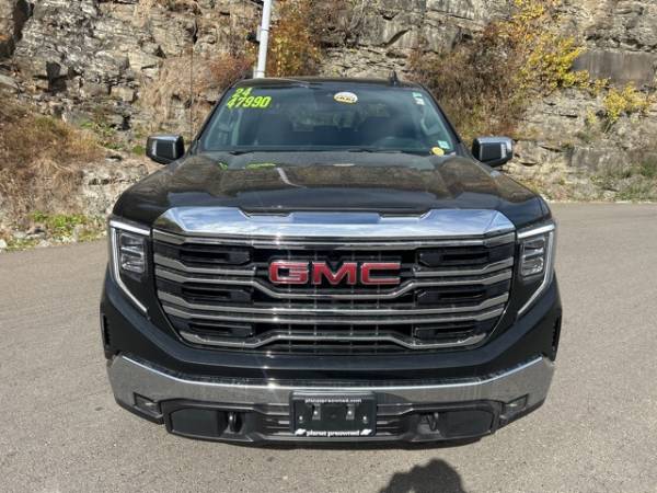 Onyx Black 2024 GMC Sierra 1500 SLT 4WD 10-Speed Automatic EcoTec3 5.3L V8 10-Speed Automatic, 4WD, Black Leather.
