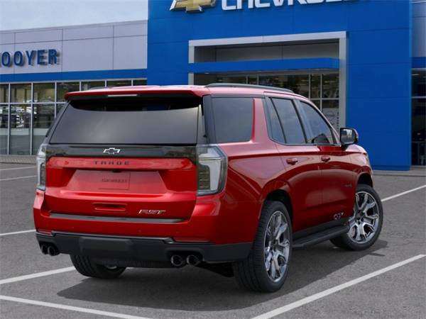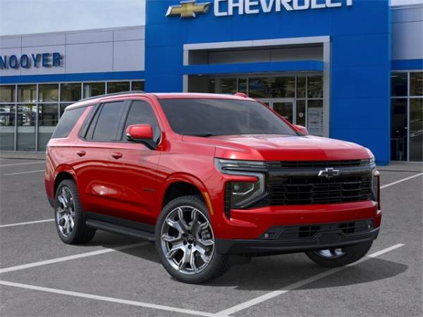 Radiant Red 2026 Chevrolet Tahoe RST 4WD EcoTec3 5.3L V8 10-Speed Automatic with Overdrive4WD, Jet Blk/Victory Red Perfo Leather, 1st & 2nd Row Color-Keyed Carpeted Floor Mats, 2-Way Power Driver Lumbar Seat Adjuster, 2-Way Power Front Passenger Lumbar Seat Adjuster, 3-Spoke Wrapped Steering Wheel, 3.23 Rear Axle Ratio, 3rd Row Manual 60/40 Split-Folding Bench Seats, 3rd row seats: split-bench, 4-Wheel Disc Brakes, 6 Speakers, 6-Speaker Audio System Feature, 8-Way Power Driver Seat Adjuster, 8-Way Power Front Passenger Seat Adjuster, ABS brakes, Air Conditioning, Alloy wheels, AM/FM radio: SiriusXM with 360L, Apple CarPlay/Android Auto, Auto High-beam Headlights, Auto-Dimming Inside Rear-View Mirror, Auto-dimming Rear-View mirror, Automatic temperature control, Brake assist, Bright Front & Rear Door Sill Plates, Bumpers: body-color, Color-Keyed Carpeting Floor Covering, Compass, Delay-off headlights, Driver door bin, Driver vanity mirror, Dual Exhaust System, Dual front impact airbags, Dual front side impact airbags, Electronic Stability Control, Emergency communication system: OnStar and Chevrolet connected services capable, Exterior Parking Camera Rear, Floor Console w/Storage Area, Four wheel independent suspension, Front anti-roll bar, Front Bucket Seats, Front Center Armrest, Front dual zone A/C, Front fog lights, Front LED Fog Lamps, Front reading lights, Frontal Driver & Outboard Passenger Airbags, Fully automatic headlights, Garage door transmitter, Heated door mirrors, Heated Driver & Front Passenger Seats, Heated Front Seats, Illuminated entry, Interior Camera, Key Card, Low tire pressure warning, Memory seat, Memory Settings for Driver, Navigation system: Google built-in compatibility (select service plan required, terms and limitations apply), Occupant sensing airbag, Outside temperature display, Overhead airbag, Overhead console, Panic alarm, Passenger door bin, Passenger vanity mirror, Perforated Leather Seat Trim, Power door mirrors, Power driver seat, Power Liftgate, Power passenger seat, Power steering, Power windows, Premium audio system: Chevrolet Infotainment 3 Premium, Premium Smooth Ride Suspension, Radio data system, Radio: 17.7" Diagonal Advanced Color LCD Display, Rain sensing wipers, Rear air conditioning, Rear anti-roll bar, Rear Power Liftgate, Rear reading lights, Rear seat center armrest, Rear window defroster, Rear window wiper, Remote keyless entry, Remote Start, RST Exterior Features, Security system, Set of 4 Wheel Locks (LPO), SiriusXM w/360L Trial Subscription, Speed control, Speed-sensing steering, Split folding rear seat, Spoiler, Steering wheel mounted audio controls, Tachometer, Telescoping steering wheel, Tilt steering wheel, Traction control, Trip computer, Universal Home Remote, USB Ports, Variably intermittent wipers, Voltmeter, Wheels: 22" x 9" Bright Machined, Wireless Phone Charging, 4WD, Jet Blk/Victory Red Perfo Leather.Recent Arrival!
