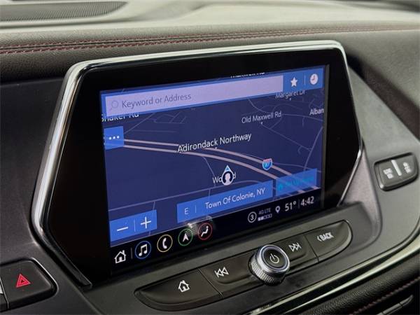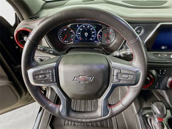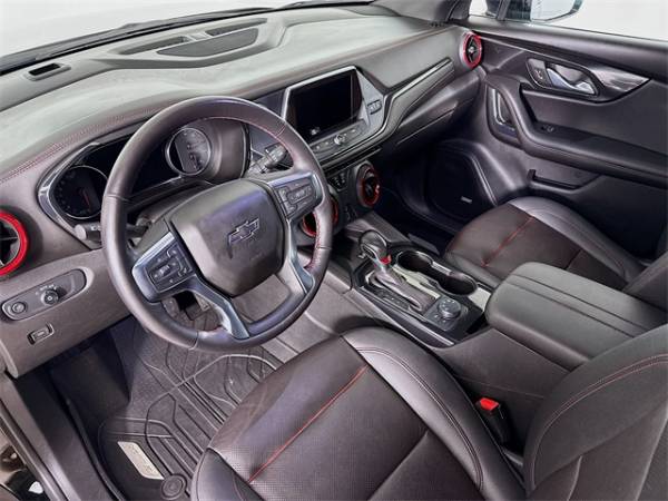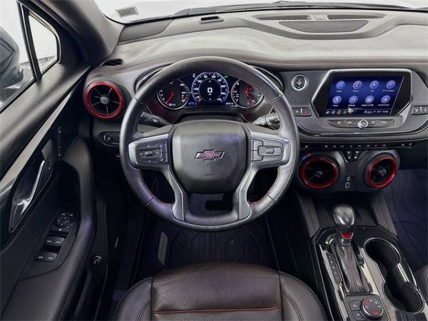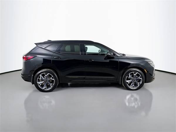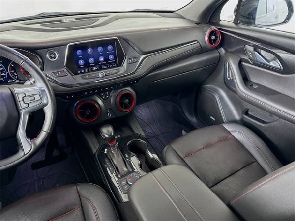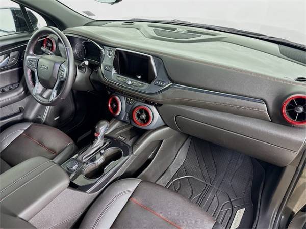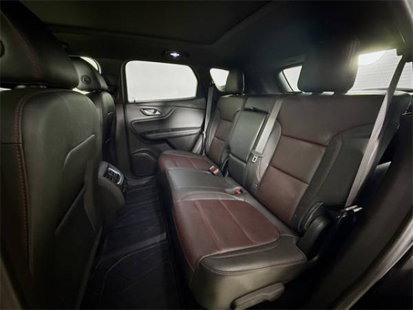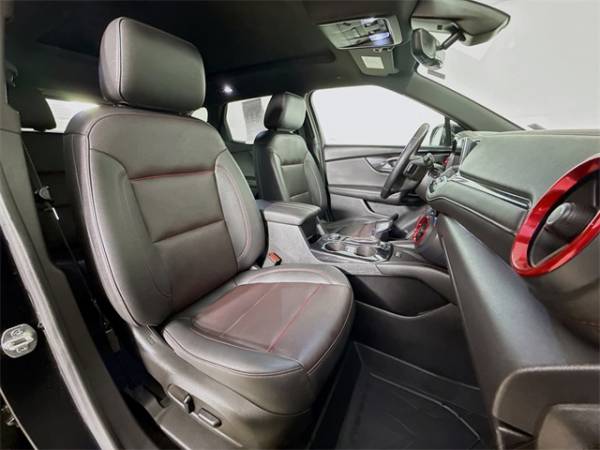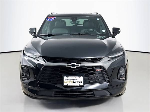 Clean CARFAX. Black 2021 Chevrolet Blazer RS AWD 9-Speed Automatic 3.6L V6 SIDI DOHC VVT AWD, 3.49 Final Drive Axle Ratio, 4-Wheel Disc Brakes, 6 Speakers, 6-Speaker Audio System Feature, 6-Way Power Front Passenger Seat Adjuster, ABS brakes, Adaptive Cruise Control, Air Conditioning, Alloy wheels, AM/FM radio: SiriusXM, Apple CarPlay/Android Auto, Auto High-beam Headlights, Auto-dimming door mirrors, Auto-dimming Rear-View mirror, Automatic temperature control, Brake assist, Bumpers: body-color, Child-Seat-Sensing Airbag, Compass, Delay-off headlights, Driver Confidence II Package, Driver door bin, Driver vanity mirror, Dual front impact airbags, Dual front side impact airbags, Electronic Stability Control, Emergency communication system: OnStar and Chevrolet connected services capable, Enhanced Automatic Emergency Braking, Enhanced Convenience Package, Exterior Parking Camera Rear, Four wheel independent suspension, Front & Rear Custom Molded Splash Guards, Front anti-roll bar, Front Bucket Seats, Front Center Armrest, Front dual zone A/C, Front reading lights, Fully automatic headlights, Garage door transmitter, HD Surround Vision, Heated door mirrors, Heated Driver & Front Passenger Seats, Heated Front Seats, Heated Rear Outboard Seating Positions, Heated steering wheel, Heavy-Duty Cooling System, High-Intensity Discharge Headlights, Hitch Guidance, Illuminated entry, Knee airbag, Leather Shift Knob, LED Headlamps, Low tire pressure warning, Memory Settings For Driver Seat & Exterior Mirrors, Navigation System, Occupant sensing airbag, Outside temperature display, Overhead airbag, Overhead console, Panic alarm, Passenger door bin, Passenger vanity mirror, Perforated Leather-Appointed Seat Trim, Power door mirrors, Power driver seat, Power Liftgate, Power Panoramic Tilt-Sliding Sunroof, Power passenger seat, Power steering, Power Tilt & Telescoping Steering Column, Power windows, Preferred Equipment Group 1RS, Radio data system, Radio: Chevrolet Infotainment 3 Plus System, Rear anti-roll bar, Rear Camera Mirror, Rear Camera Mirror Washer, Rear reading lights, Rear seat center armrest, Rear window defroster, Rear window wiper, Remote keyless entry, Ride & Handling Suspension, Safety Alert Seat, Security system, SiriusXM w/360L, Speed control, Speed-sensing steering, Split folding rear seat, Spoiler, Steering wheel mounted audio controls, Tachometer, Telescoping steering wheel, Tilt steering wheel, Traction control, Trailering Equipment, Trip computer, Turn signal indicator mirrors, Variably intermittent wipers, Ventilated Driver & Front Passenger Seats, Voltmeter, Wheels: 20" Dark Android Machined-Face Aluminum, Wireless Charging, AWD.Please reach out to schedule an appointment for a viewing @ 518-458-7700 www.denooyerchevrolet.com. Recent Arrival! 19/26 City/Highway MPGAwards: * JD Power Automotive Performance, Execution and Layout (APEAL) Study