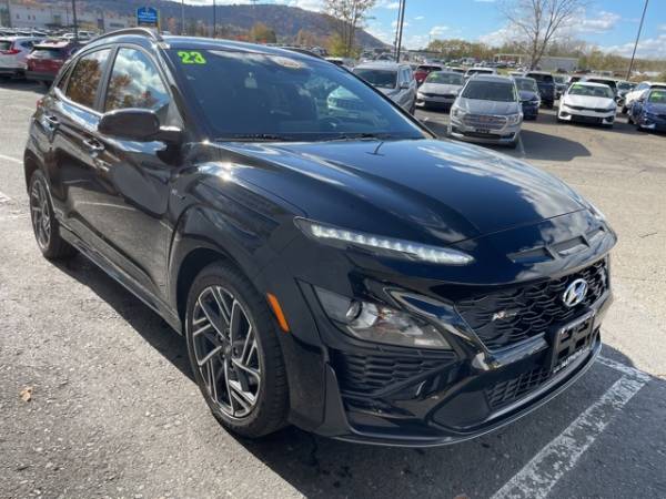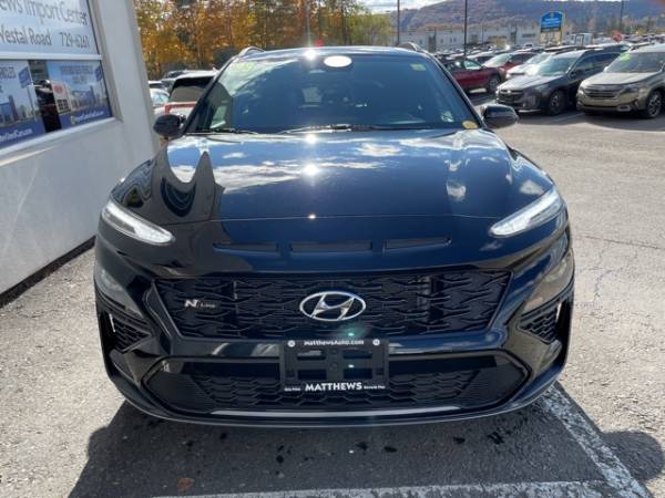 Matthews Import Center promises each customer a thorough and confident 120-point inspection on our used inventory, guaranteeing a relaxing and peace-of-mind experience. We are located behind Lowes in Vestal, NY. Or call us at (607) 729 - 6261Matthews Import Center3013 Old Vestal RoadVestal, NY 13850. Ultra Black Pearl 2023 Hyundai N Line Kona AWD Shiftronic I4Odometer is 16317 miles below market average! 27/32 City/Highway MPG