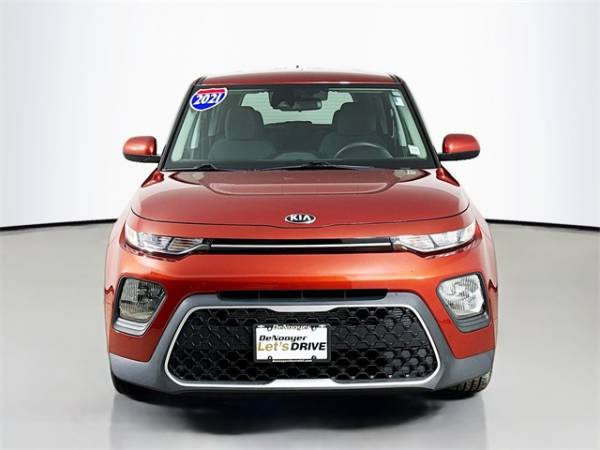 Clean CARFAX. Mars Orange 2021 Kia Soul S FWD CVT 2.0L I4 MPI DOHC 16V LEV3-SULEV30 147hp 4-Wheel Disc Brakes, 6 Speakers, ABS brakes, Air Conditioning, Alloy wheels, AM/FM radio, Apple CarPlay & Android Auto, Brake assist, Bumpers: body-color, Carpeted Floor Mats, Delay-off headlights, Driver door bin, Driver vanity mirror, Dual front impact airbags, Dual front side impact airbags, Electronic Stability Control, Exterior Parking Camera Rear, Front anti-roll bar, Front Bucket Seats, Front Center Armrest, Front reading lights, Front wheel independent suspension, Fully automatic headlights, Low tire pressure warning, Occupant sensing airbag, Outside temperature display, Overhead airbag, Overhead console, Passenger door bin, Passenger vanity mirror, Power door mirrors, Power driver seat, Power steering, Power windows, Premium Cloth Seat Trim, Radio: AM/FM/MP3 Audio System, Rear window defroster, Rear window wiper, Remote keyless entry, Speed control, Speed-sensing steering, Split folding rear seat, Steering wheel mounted audio controls, Tachometer, Telescoping steering wheel, Tilt steering wheel, Traction control, Trip computer, Variably intermittent wipers, Wheels: 16" x 6.5 Alloy.Please reach out to schedule an appointment for a viewing @ 518-458-7700 www.denooyerchevrolet.com. Recent Arrival! 29/35 City/Highway MPG