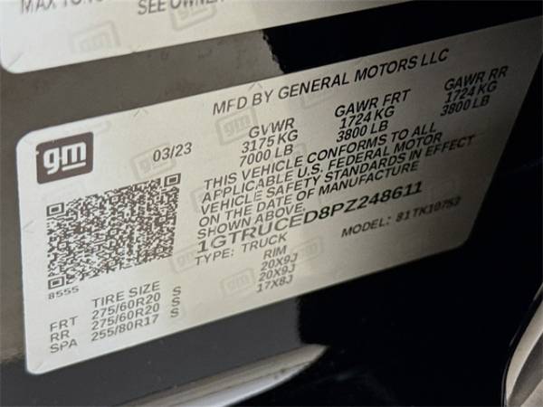 Onyx Black 2023 GMC Sierra 1500 Elevation 4WD 10-Speed Automatic EcoTec3 5.3L V8 10-Speed Automatic, 4WD, Black Cloth, 10-Way Power Driver Seat Adjuster w/Lumbar, 120-Volt Bed Mounted Power Outlet, 120-Volt Instrument Panel Power Outlet, 170 Amp Alternator, 2 Charge/Data USB Ports, 2 Charge/Data USB Ports Inside Center Console, 2 Type-C Charge-Only Rear USB Ports, 220 Amp Alternator, 4-Way Manual Passenger Seat Adjuster, 4-Wheel Disc Brakes, 6 Speakers, 6-Speaker Audio System Feature, ABS brakes, Air Conditioning, Alloy wheels, AM/FM radio, Apple CarPlay/Android Auto, Auto High-beam Headlights, Auto-Locking Rear Differential, Automatic Emergency Braking, Automatic temperature control, Auxiliary External Transmission Oil Cooler, Body Color Header w/Gloss Black Mesh Grille Bars, Brake assist, Buckle to Drive, Bumpers: body-color, Cloth Seat Trim, Color-Keyed Carpeting Floor Covering, Compass, Deep-Tinted Glass, Delay-off headlights, Driver door bin, Driver vanity mirror, Dual Exhaust System, Dual front impact airbags, Dual front side impact airbags, Electric Rear-Window Defogger, Electrical Steering Column Lock, Electronic Precision Shift, Electronic Stability Control, Emergency communication system: OnStar and GMC connected services capable, External Engine Oil Cooling, Floor-Mounted Center Console, Following Distance Indicator, Forward Collision Alert, Front 40/20/40 Split-Bench Seat, Front anti-roll bar, Front Bucket Seats, Front Center Armrest w/Storage, Front dual zone A/C, Front fog lights, Front Frame-Mounted Black Recovery Hooks, Front License Plate Kit, Front Pedestrian Braking, Front reading lights, Front Rubberized-Vinyl Floor Mats, Front wheel independent suspension, Fully automatic headlights, GMC Connected Access Capable, HD Rear Vision Camera, Heated door mirrors, Heated Driver & Front Outboard Passenger Seating, Heated Front Seats, Heated steering wheel, Heavy-Duty Air Filter, High Capacity Suspension Package, Hill Descent Control, Hitch Guidance, Illuminated entry, Integrated Trailer Brake Controller, IntelliBeam Automatic High Beam On/Off, Keyless Open & Start, Lane Keep Assist w/Lane Departure Warning, LED Cargo Area Lighting, Low tire pressure warning, Manual Tilt-Wheel & Telescoping Steering Column, Navigation System, Not Equipped w/Steering Column Lock, Not Equipped with GMC MultiPro Tailgate, Occupant sensing airbag, Off-Road Suspension, OnStar & GMC Connected Services Capable, Outside temperature display, Overhead airbag, Overhead console, Panic alarm, Passenger door bin, Passenger vanity mirror, Power Door Locks, Power door mirrors, Power driver seat, Power Front Windows w/Driver Express Up/Down, Power Front Windows w/Passenger Express Down, Power Rear Windows w/Express Down, Power steering, Power windows, Preferred Equipment Group 3SB, Premium audio system: GMC Infotainment System, Push Button Start, Radio data system, Radio: Premium GMC Infotainment Audio System, Rear reading lights, Rear Rubberized-Vinyl Floor Mats, Rear step bumper, Rear Wheelhouse Liners, Rear window defroster, Remote keyless entry, Remote Vehicle Starter System, Security system, SiriusXM w/360L, Speed control, Speed-sensing steering, Split folding rear seat, Spray-On Pickup Bed Liner w/GMC Logo, Standard Tailgate, Steering Wheel Audio Controls, Steering wheel mounted audio controls, Tachometer, Telescoping steering wheel, Theft Deterrent System (Unauthorized Entry), Tilt steering wheel, Traction control, Trailering Package, Trip computer, Variably intermittent wipers, Voltmeter, Wheels: 20" x 9" High Gloss Black Painted Aluminum, Wi-Fi Hotspot Capable, Wireless Charging, Wireless Phone Projection, X31 Hard Badge, X31 Off-Road Package, 10-Speed Automatic, 4WD, Black Cloth.Please reach out to schedule an appointment for a viewing @ 518-458-7700 www.denooyerchevrolet.com. Recent Arrival! Odometer is 13642 miles below market average!