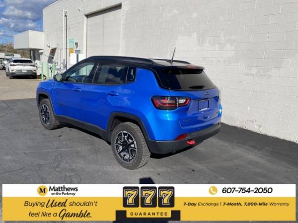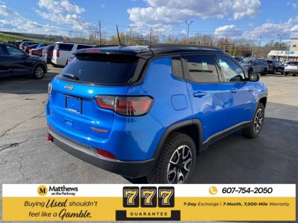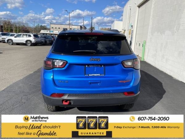 Quick Order Package 29E,4.398 Final Drive Ratio,Wheels: 17" x 6.5" Painted Black Aluminum,Premium Cloth/Leather Trim Bucket Seats,Premium Leather Trimmed Bucket Seats,Radio: Uconnect 5 w/10.1" Display,Radio: Uconnect 5 Nav w/10.1" Display,Front License Plate Bracket,Sun and Sound Group,Trailhawk Elite Group,Ventilated Front Seats,Reversible Carpet/Vinyl Cargo Mat,Power Front/Fixed Rear Full Sunroof,Cluster 10.25" TFT Color Display,GPS Navigation,Power 2-Way Driver Lumbar Adjust,Heated Front Seats,Power Liftgate,Power 2-Way Passenger Lumbar Adjust,Power 8-Way Adjust Front Passenger Seat,Premium Taillamps,Driver Seat Memory,LED Low/Highbeam Projector Headlamps,Premium LED Fog Lamps,Windshield Wiper De-Icer,Heated Steering Wheel,Premium Alpine Speaker System,Global Telematics Box Module (TBM),HD Radio,Alexa Built-In,10.1" Touchscreen Display,2nd Row USB Type A/C Charge Only,SiriusXM Guardian - Included Trial (B),4G LTE Wi-Fi Hot Spot,SiriusXM w/360L,Connected Travel & Traffic Services,SiriusXM Radio Service,For Details, Visit DriveUconnect.com,For More Info, Call 800-643-2112,Remote Start System,Integrated Voice Command w/Bluetooth,Foot Activated Open 'N Go Liftgate,4-Wheel Disc Brakes,Emergency communication system: Jeep Connect,Auto High-beam Headlights,AM/FM radio: SiriusXM,Front Center Armrest w/Storage,Compass,Auto-dimming Rear-View mirror,Front beverage holders,Variably intermittent wipers,Turn signal indicator mirrors,Trip computer,Traction control,Tilt steering wheel,Telescoping steering wheel,Steering wheel mounted audio controls,Split folding rear seat,Speed control,Security system,Remote keyless entry,Rear window wiper,Rear window defroster,Rear seat center armrest,Rear anti-roll bar,Rain sensing wipers,Power windows,Power steering,Power door mirrors,Passenger vanity mirror,Passenger door bin,Panic alarm,Overhead console,Overhead airbag,Outside temperature display,Occupant sensing airbag,Low tire pressure warning,Leather steering wheel,Knee airbag